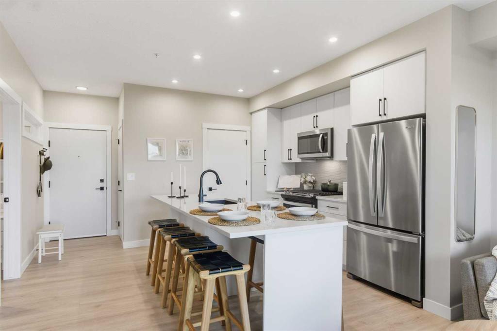 Welcome to Lawrie Park, where modern living meets community charm! This two-bedroom, two-bathroom condo offers 691 sq. ft. of thoughtfully designed living space and is ready for you to move in today! Partners Builders’ popular model has completely sold out in Buildings 1000, 2000, and 3000, and while Building 4000 is currently under construction with 11 more of this same model, those units won’t be available until mid-2026—and they’ll cost more. Even better, this condo offers something Building 4000 units don’t: a walkout patio with direct outdoor access! This home is both pet and people friendly, and like all Partners properties, it showcases exceptional quality, attention to detail, and outstanding customer service. The community offers great amenities including a basketball court, community gardens, and gathering spaces. You’ll appreciate over $21,000 in upgrades, including: Gas stove and oven, Laminate flooring throughout, Upgraded quartz island with built-in dining table, Extra kitchen drawers, And more! Enjoy nearby conveniences such as the dog park across the street, pump track, pond, walking paths, and playground in the Wedderburn community. Don’t wait until 2026—come see, fall in love, and move right in!
