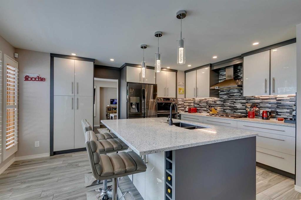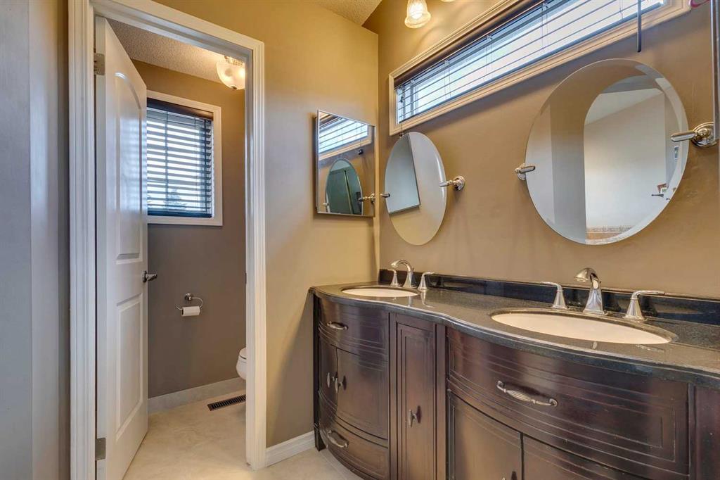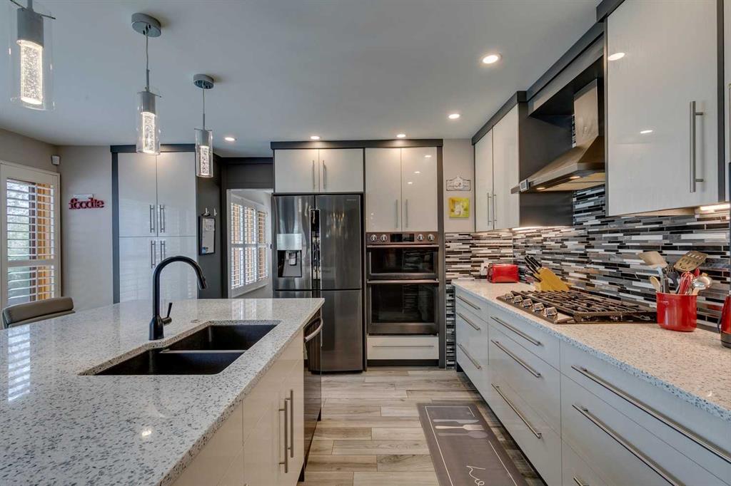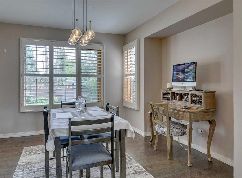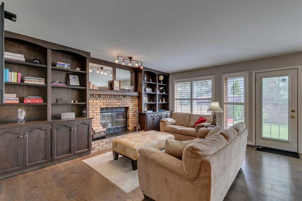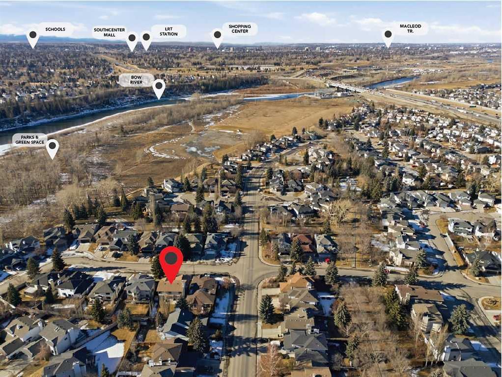 * SEE SUMMER VIDEO * This exceptional family home offers 2,919 SQ. FT. of thoughtfully designed living space, blending timeless character with modern updates. A true standout, it features FOUR BEDROOMS UPSTAIRS plus a fully finished basement—an increasingly rare and highly desirable layout for families. Proudly maintained by the ORIGINAL OWNERS, the home welcomes you with a grand foyer, expansive windows, engineered flooring, and elegant cast-iron railings. The bright kitchen showcases white cabinetry, granite countertops, a corner pantry, Samsung appliances, and a sunlit breakfast nook, complemented by a formal dining room ideal for entertaining. The living room is anchored by a charming wood-burning brick fireplace with built-ins, while a versatile front flex room offers the perfect home office or retreat. Upstairs truly shines with FOUR GENEROUS BEDROOMS, including a private primary suite with double closets and an ensuite featuring a jetted tub and separate shower. Three additional bedrooms and a full bath complete the upper level. The fully finished basement adds exceptional flexibility with a large recreation room, family room, and bar—perfect for entertaining or relaxing. Outside, enjoy a private backyard ready for summer gatherings. Recent upgrades include a BRAND-NEW ROOF, newer furnace and hot water tank, fresh exterior paint, custom blinds plantation shutters and many windows have been also replaced! Ideally located steps from parks, schools, Douglasdale Golf Course, shopping, Deerfoot Trail, Bow River pathways, and Fish Creek Park—this home delivers space, comfort, and lifestyle in one of Calgary’s most desirable communities. Book your private showing today!