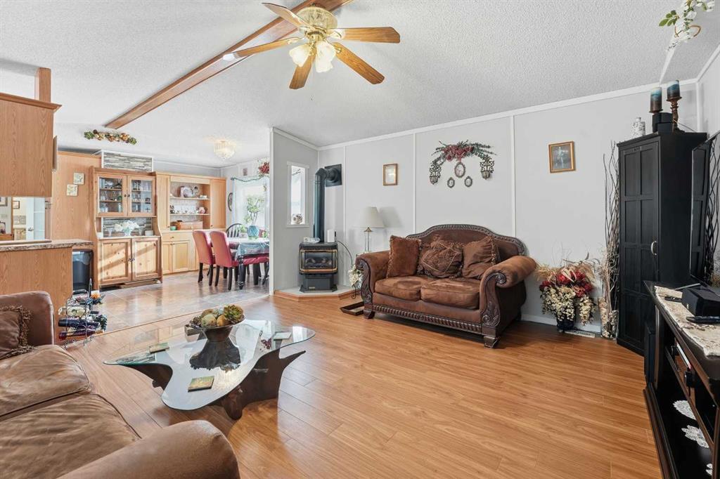 Nestled just minutes from town and surrounded by mature trees, this well-maintained mobile home park offers the perfect balance of peace, convenience, and community. Residents enjoy access to a recreation centre featuring a pool table, shuffleboard table, and a rentable kitchen, plus potential RV parking within the park. This inviting 3-bedroom, 2-bathroom home shows pride of ownership throughout. The attached double garage is insulated, drywalled, and roughed-in for gas, while a spacious mudroom and flex space addition connects directly to the garage for added functionality. The open-concept kitchen, dining, and living room form the heart of the home, complete with a gas fireplace and built-in hutch for added charm and storage. The kitchen renovation features modern cabinetry and stainless steel appliances, offering a clean, updated look. At the front of the home are two comfortable bedrooms and a renovated main 4-piece bathroom, while the primary suite at the back includes a walk-in closet and a beautifully updated 3-piece ensuite with a walk-in shower. Additional upgrades include the removal of Poly-B plumbing, updated flooring and paint, and a laundry/storage room with washer and dryer included. Experience relaxed, affordable living in a quiet, hidden gem of a community - a place where pride of ownership truly shines.