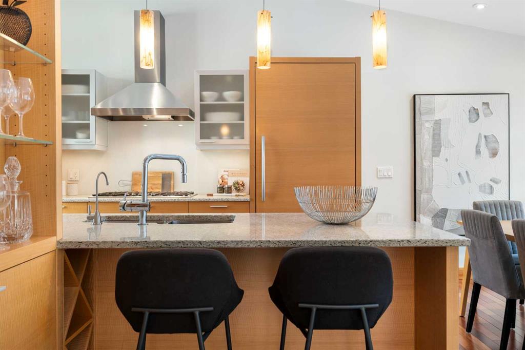 Welcome to a rare find — a home that offers beautiful views of sunrises and downtown yet feels tucked away in nature conveniently situated in the popular neighbourhood of Coach Hill. Surrounded by mature trees , and framed by open sightlines from every window, this one-of-a-kind property blends modern design, and warmth in a 5-level split layout that feels both expansive and effortlessly livable. Every detail has been thoughtfully selected: Brazilian hardwood floors, recycled-glass countertops, vaulted ceilings, exposed beams, and premium Miele appliances bring craftsmanship and character to the forefront. The top-level primary suite is your private retreat. With a wood-burning fireplace, a cozy sitting area, a workspace that opens to the floor below, a spa-like ensuite with a jetted tub, and a beautifully designed custom closet, this wonderful space invites you to unwind and recharge. Entertaining flows naturally in the open concept living, dining, and kitchen level. French doors lead out to an impressive two-tier cedar deck (over 300 sq. ft.) complete with a gas line—perfect for grilling, hosting friends, or enjoying quiet summer evenings under the canopy of trees. A matching cedar fence creates a private, enclosed yard. The main level offers two bright, welcoming bedrooms—one with direct access to a deck—and a 4-piece bath. Just below grade, a spacious theatre/playroom with large windows creates the perfect space for movie nights, game days, or a vibrant kids’ zone. The lower mudroom adds functionality and comfort with heated floors and direct access to the attached rear-drive garage. This home is freshly painted with a new hot water tank and air conditioning. Set beside a quiet, peaceful green space, this home offers a combination of design, warmth, privacy, and convenience doesn’t come along often—don’t miss the opportunity.