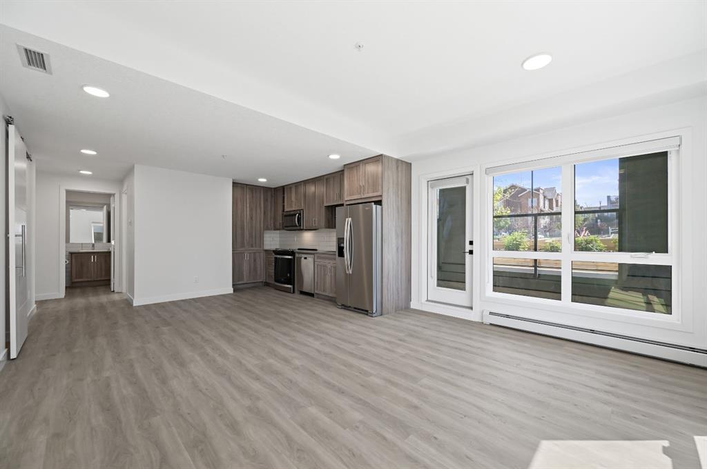 Step into the lifestyle you’ve been waiting for with this bright and beautifully appointed 2-bedroom, 2-bath southeast-facing corner condo in the thriving community of Livingston. Bathed in natural light and thoughtfully designed, this move-in ready home features modern vinyl plank flooring, sleek lighting, and convenient in-suite laundry. A versatile den adds convenient extra storage or the perfect work-from-home nook, while the open-concept layout flows effortlessly into your own expansive private patio - an ideal outdoor extension of your living space, perfect for morning coffee or evening wind-downs. Titled underground parking ensures year-round comfort and peace of mind, with added conveniences like a dog wash and car wash station also located in the secure underground space. Situated just minutes from the airport, CrossIron Mills, and with seamless access to Stoney and Deerfoot Trails, you’re perfectly connected to everything Calgary has to offer. Plus, enjoy unmatched community amenities - from outdoor skating rinks and splash parks to a full gymnasium and multi-sport courts. Whether you’re a first-time buyer, investor, or seeking a smart lifestyle upgrade, this vacant unit is ready for immediate possession. Don’t miss your chance to live where convenience, comfort, and community come together.