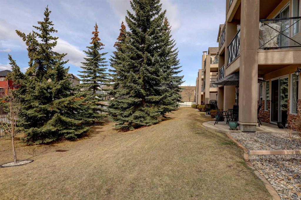 Let the sun shine in!! You've found the home that is bathed in an abundance of natural light that will lift your spirits. This corner unit offers 2 beds/2 baths on the main floor, featuring 2 patios, in an 18+ adult complex. One patio enjoys street-side activity perfect for bar-b-quing and socializing with neighbours , while the second patio provides a more peaceful experience overlooking the lush greenspace. The best of both experiences to choose from. You'll appreciate the convenience of a sidewalk off the driveway that leads directly to the patio doors of this unit as well. A rare feature in the complex that will benefit anyone with mobility issues. So many more advantages this unit offers to talk about...The open floor plan invites entertaining and conversation, with an ease for furniture placement due to no awkward baseboards to deal with. Two kitchen windows contribute to the light-filled experience, with one presenting a lovely view of the mountains. The thoughtfully designed kitchen offers an excellent capacity for more than one cook at a time. With more than ample counter top, cupboard and pantry space for storage. The primary bedroom is sizeable enough for a king size suite and includes a well sized walk in closet and 4 pc. ensuite. The 3 pc. bath off the main area adds convenience for guests, as does the second bedroom - also with a view of the mountains! In-suite laundry, a titled underground parking stall and an assigned 9'X5' storage locker in front of the parking stall round off the added value you'll find here. This very well managed complex creates a sense of community with the various amenities. Notably the games/community room with library, pool table, dart boards and a comfy meet-up area. All are located in bldg. 2. While bldg. 1 hosts a fitness room with sauna/change room & shower. A car wash bay is steps away from the parking stall. The landscaped courtyard showcases a charming gazebo and lovely pond to enjoy. Easy access with a short drive to a multitude of shopping options, restaurants, and professional services. Arbour Lake hosts the only lake in the Northwest that you'll have priviledges to. Including the use and enjoyment of tennis courts. Within close proximity to the LRT Station travelling into the Downtown & University of Calgary, Crowchild & Stoney Trails, schools...Need I say more! You truly need to start your car and view this unit...