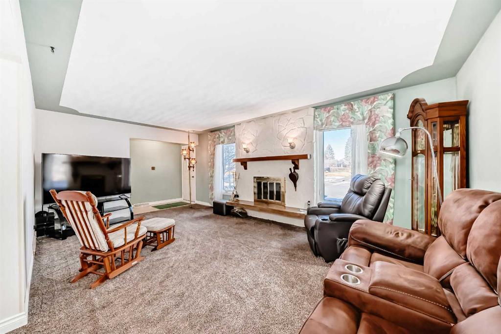 Nestled in Mayland's sought after desirable Mackid Crescent looking out to an open park like setting, tranquility in a inner city location. The strong curb appeal makes this home so welcoming, with brick facing, vinyl windows, poured walks & maintenance free fencing all around the property. Upon entering the front foyer it offers plenty of room & closet space. The living room & dining room offer an open concept . The sculpted ceilings & wood burning fireplace give it a warm inviting feel. Hardwood under carpet, other than kitchen & bath. The kitchen upgrade was planned with functionality & fantastic cabinet space. Pull out pot drawers, pantry, 2 lazy susan’s & ample counter space with Built in China cabinet in oak finish & glass. Large window & Double kitchen sink which looks out to the entire back yard. 3 bedrooms in total. The main floor flex room can be converted back to a primary bedroom ,(just build that dream closet) & the patio doors go out to a maintenance free 4'.8 x 18'.8 composite deck with a crank out Awning. The main bath has a double walk in shower A spacious vanity with ample storage . The lower level is fully developed with a 3rd bedroom, a den/office, 3 piece bath & large family room. There is a spacious cold room with built in shelving. The furnace was replaced with high efficient in 2019 along with the hot water tank & humidifier. The south back yard has a patio with gas line for barbecuing & a garden awaiting your green thumb or just relax & enjoy your privacy. The covered veranda with swing included is great for rainy days. Double heated garage with double doors open to paved back alley. The shingles on the home & garage replaced in 2019. The home has added insulation value as siding was placed over original stucco. Walking distance to Middle school, Elementary & French immersion. Devry is also close by. Bus located 5 mins. walk away, also shopping & medical clinic & eateries. LRT, Downtown, Hospital, Zoo, Telus Spark Science, & bike path make this community a charm. TransCanada, Barlow Trail, Deerfoot Trail & Memorial Drive access.