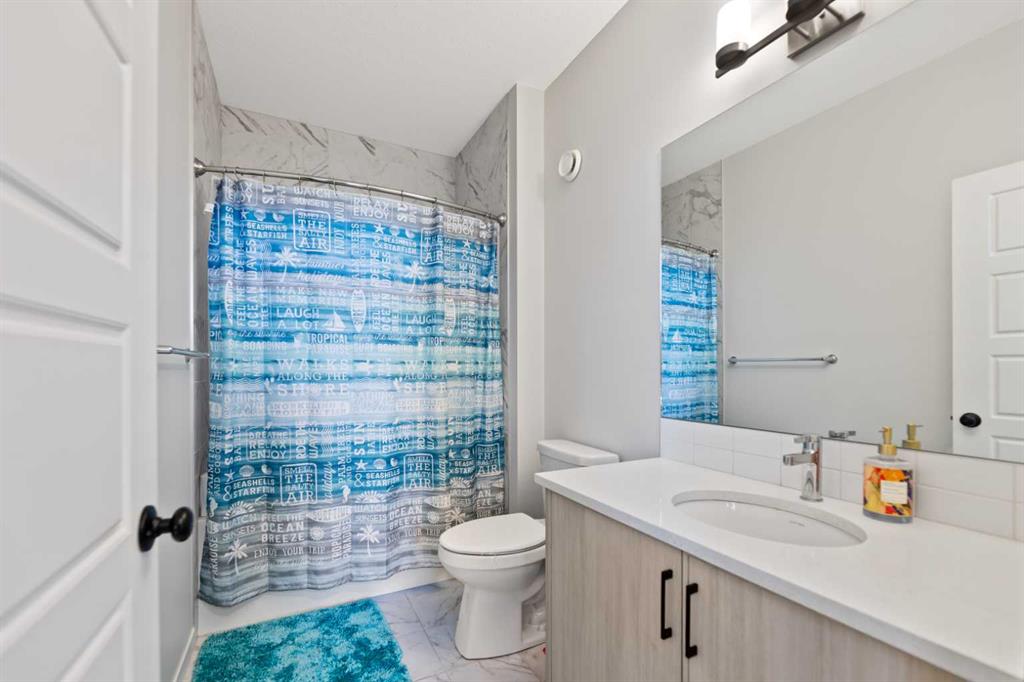 2024 BUILT, NEAR NEW 1819 SQUARE FEET, NORTH FACING UPGRADED HOUSE, MAIN FLOOR FULL WASHROOM & BEDROOM, UPGADED KITCHEN AND LARGER UPPER FLOOR BEDROOMS WITH STANDING SHOWER ENSUITE - A PERFECT START FOR FIRST TIME BUYER OR INVESTOR. Live near the Shopping center, lake, green space, schools and playgrounds with loads of upgrades. Come to Chestermere's premium community of Chelsea and experience the thrill of this gem has to offer. This 4 4-bedroom3 full washrooms house includes a convenient combo of main floor bedroom and full washroom, beautiful kitchen with granite countertops, large living area, and two car concrete parking pad. Upstairs you will find, a decent size owner's En-suite along with generous sized two additional bedrooms, a bonus room and a laundry for added convenience. This NEAR NEW home comes with big windows in Living area and a bonus room for extra day light. A huge unfinished basement with SEPARATE ENTRANCE and three large windows, is awaiting for you imaginations. Imagine living close to COSTCO, WALMART, CINEPLEX, SCHOOLS, LAKE AND PONDS, and peace of mind living comes with a brand new home. Book your Showing TODAY !
