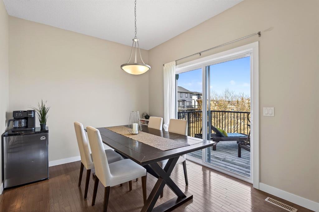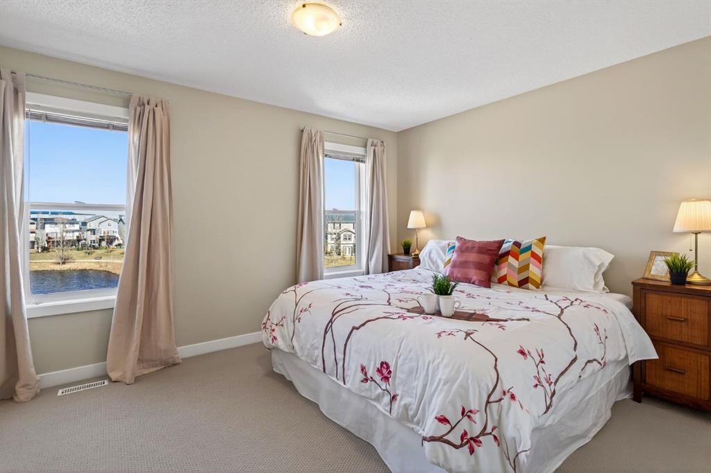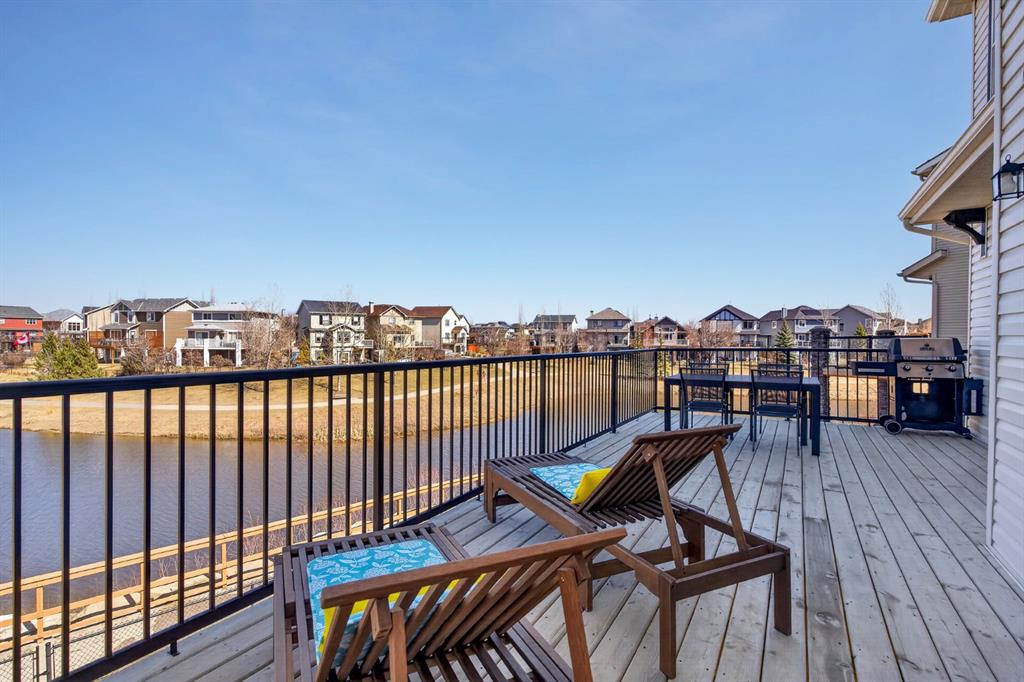 Imagine starting your morning with coffee on the deck, watching the light dance across the calm pond behind your home. Tucked onto a quiet cul-de-sac with a central island for extra parking, this beautifully maintained home offers a rare mix of privacy, views, and family-friendly living in the heart of Sagewood. Inside, the home is filled with natural light from front to back. On the main floor, the 9' ceilings on the main floor mean bigger front windows overlooking the open square (no home directly in front of you), while the back of the home captures peaceful pond views. The living room features a gas fireplace and large windows, creating a cozy space to relax while enjoying the scenery. The kitchen is made for everyday living, with tons of cabinetry, a large island with seating, gas range, and an oversized pantry conveniently located just off the garage entry. The dining area offers plenty of room to expand for holidays and gatherings. Upstairs you’ll find two spacious kids’ bedrooms, a main bathroom with double sinks, and a primary retreat that easily fits a king bed. The ensuite features double vanities, a large soaker tub with a view, and a separate shower. The fully finished walkout basement adds a massive rec space with a fresh bathroom, extra storage, and sliding doors leading to the lower patio. Above, the full-width deck offers room for both dining and lounging while overlooking the pond. Knowing this home has been incredibly well maintained will give you peace of mind... Located just steps from C.W. Perry School, ponds, pathways, soccer fields, and outdoor skating rinks, this home delivers the lifestyle Sagewood is known for — peaceful, connected, and perfect for families.