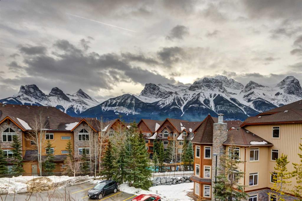Bright, freshly painted, and move-in ready! This 2 bed / 2 bath Fairholme Village condo is a true gem and a rare opportunity. It’s ideal as a first home, upsizer home, or perfect for a weekend getaway to Canmore. The smart, open-concept layout makes everyday living or entertaining easy, while the sunny south-facing balcony delivers incredible mountain views, including the Three Sisters. Both bedrooms enjoy natural light and more mountain views, plus a private 4 piece ensuite and walk in closet just off the primary bedroom. As well as a 3 piece bathroom just off the foyer. Laundry is located on the same floor as the unit, just down the hallway. This fantastic condo is well-positioned in the complex, and only minutes to downtown, the Shops of Canmore, shopping, services, restaurants, amenities, public transit, and many scenic multi-use trails. One indoor secured storage locker, indoor secured bike storage, an outdoor parking stall, fitness room, and meeting room, round out the whole package. Vacant and ready for quick possession. Your best Rocky Mountain lifestyle starts here!