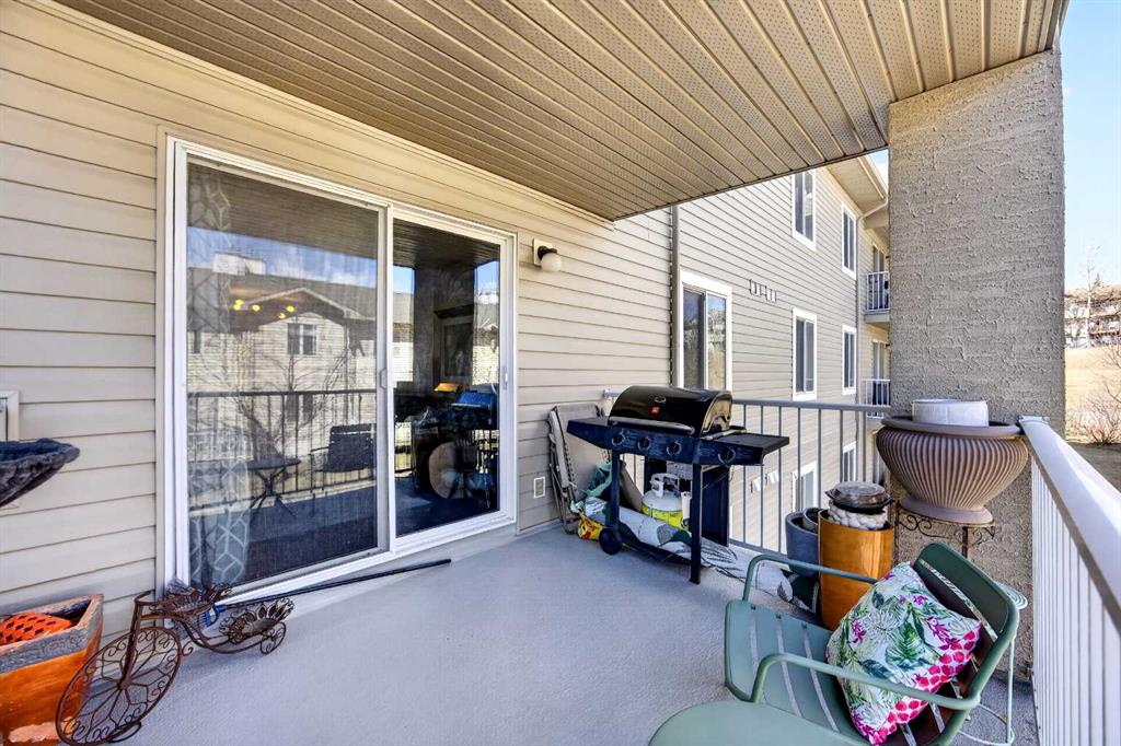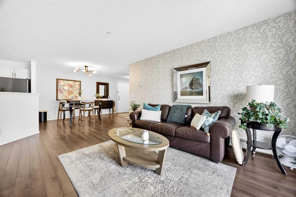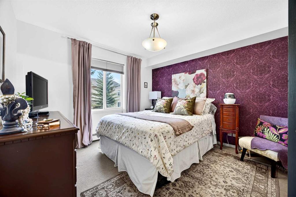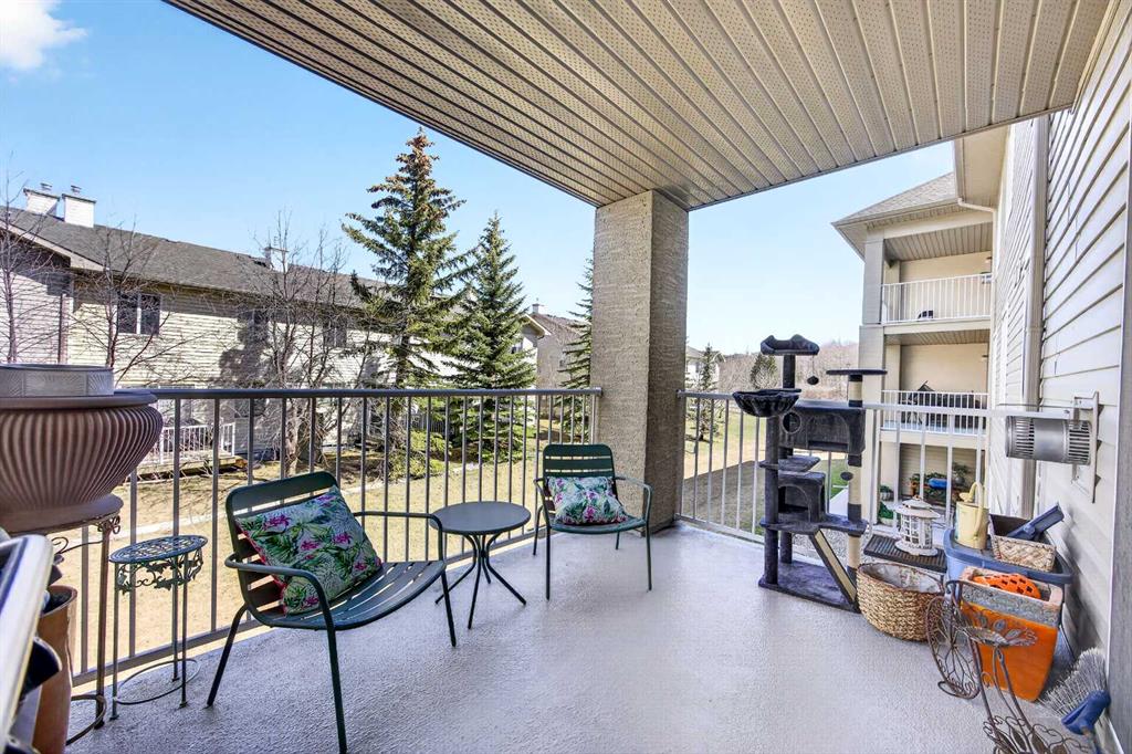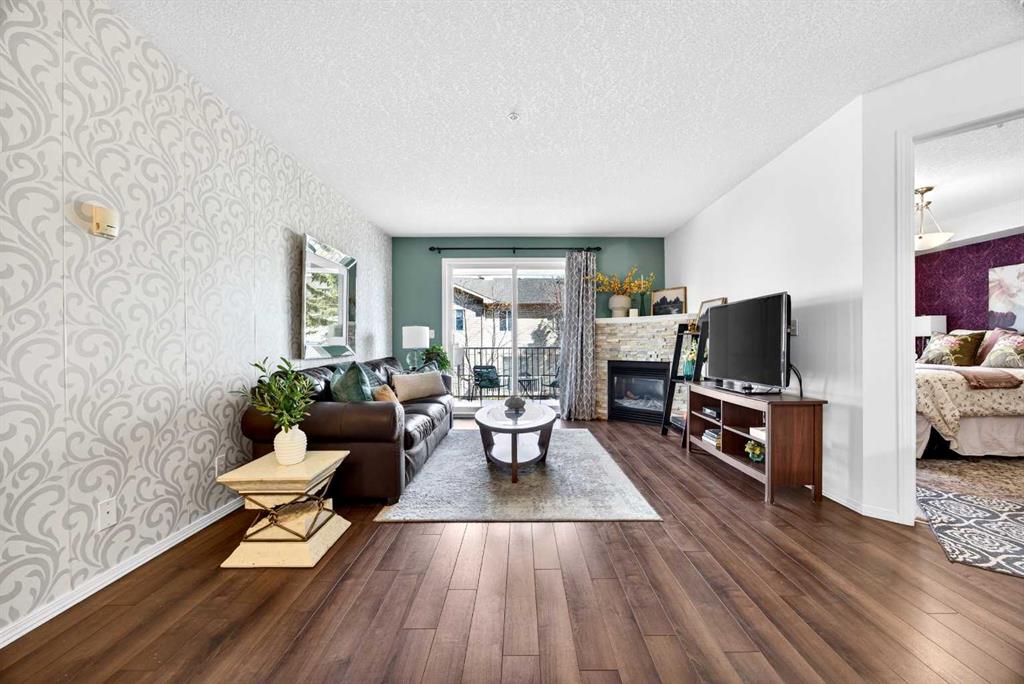 Welcome to Citadel Meadows - a bright and inviting two bedroom, two bathroom condo with a view of the ravine. This spacious home is filled with natural light and features laminate flooring and an open-concept layout with a large living room, cozy gas fireplace, and a generous dining area—perfect for entertaining. The kitchen offers ample space for cooking and storage with upgraded stainless appliances. The primary bedroom includes a walk-through closet leading to a 4-piece ensuite bathroom. Great layout for roommates with bedrooms on opposite sides of the unit and another 4-piece bath. You’ll also find in-suite laundry and storage, plus an additional storage locker located downstairs. Step out onto the large balcony overlooking peaceful green space and a scenic ravine—an ideal spot to relax. This unit also comes with one titled, heated underground parking stall for added convenience. Great value in an updated unit in Citadel!