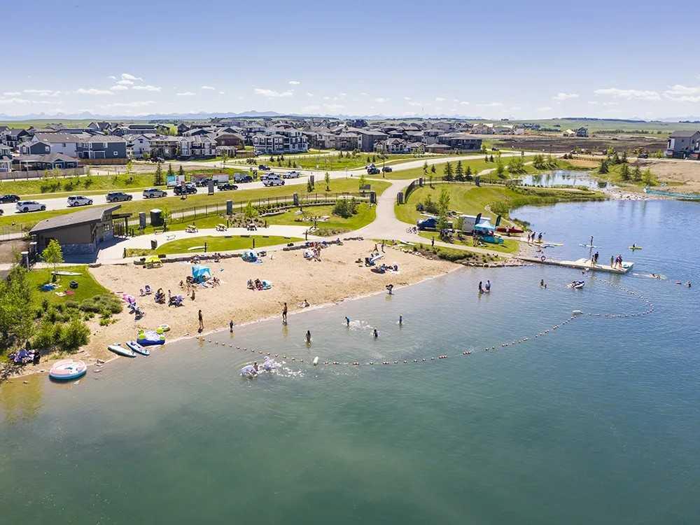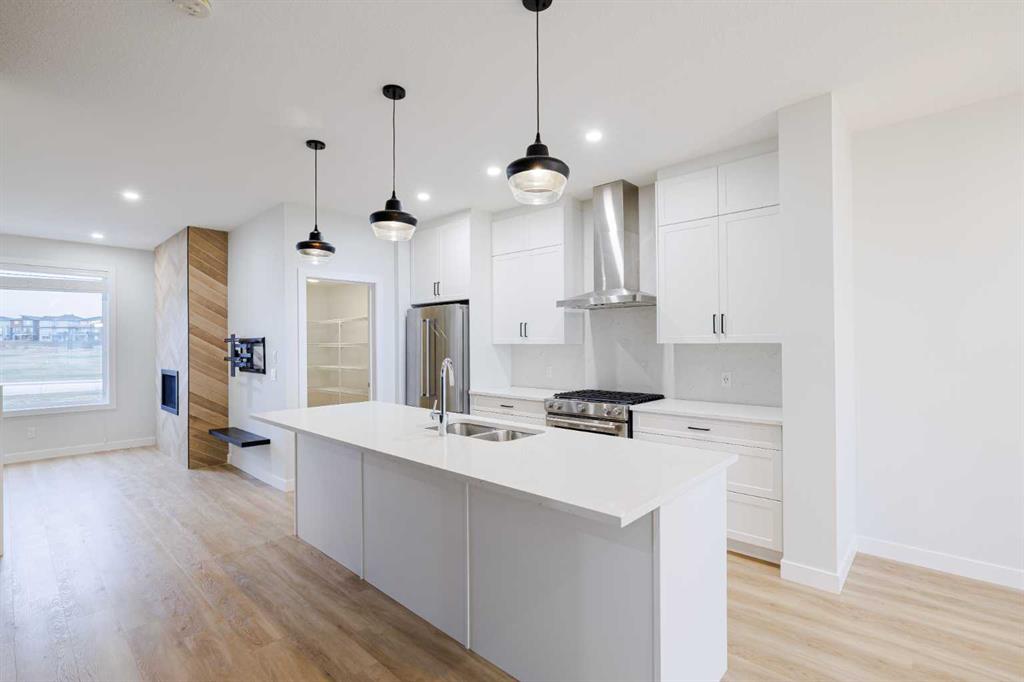 Welcome to this exquisite townhome that epitomizes the perfect blend of luxury, functionality, and natural beauty. Nestled in Harmony—an award-winning community that has proudly earned “Community of the Year – Calgary Region” eight times—this residence stands out with a plethora of upgrades, meticulous maintenance, and thoughtful design. Harmony offers an unmatched lifestyle, combining lake and golf living, walkable amenities, and stunning mountain views. As a resident, you’ll enjoy social membership at the renowned Mickelson National Golf Club, giving you access to world-class golfing right in your backyard. Families will appreciate the proximity to sought-after schools including Springbank Middle School, Springbank Community High School, and the prestigious Edge School for athletes and academics. As you step inside, you are greeted by a spacious den off the front entrance, just steps from the oversized double-car garage featuring a forward-thinking 40-amp EV connection, a true testament to modern living. Ascending to the main level, the kitchen immediately captivates with its elegant finishes—quartz countertops, a large island with breakfast bar seating, ceiling-height white cabinetry, and upgraded stainless steel appliances including a gas range for the culinary enthusiast. A massive pantry with extensive shelving ensures optimal organization. Adjacent to the kitchen is a charming eating nook with access to the front deck, where you can enjoy peaceful lake views. The sunlit living room offers a bright and inviting atmosphere, with panoramic mountain vistas framed by large windows, and a stylish fireplace with custom tile surround adding warmth and sophistication. The upper level showcases the primary suite, complete with a custom California Closet system and a spa-like ensuite featuring in-floor heating, a private water closet, standalone shower, and dual vanity. An upgraded laundry area with quartz countertop, additional shelving, and a large linen closet adds convenience. Two additional generously sized bedrooms and a 4-piece bathroom complete this floor. Outside of the home, Harmony’s amenities enrich everyday living—a 5-minute drive to Calaway Park, and the upcoming Bingham Crossing development with a future Costco and numerous shops and services. Residents also enjoy walking access to the community lake, miles of pathways, and future commercial amenities including the Nordic Spa. This townhome goes beyond ordinary, delivering a lock-and-leave lifestyle with maintenance-free living—no snow shoveling or yard work required—and four parking spots between the garage and driveway. With air conditioning, thoughtful upgrades, breathtaking surroundings, and pride of ownership throughout, this home offers not just a residence, but a lifestyle of elegance and harmony.