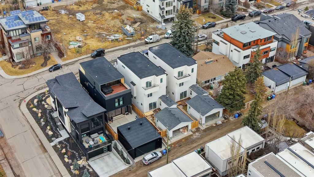 Beautifully positioned in the heart of Marda Loop on a quiet, tree-lined street and situated on a 31’x125’ lot, this super luxe residence offers nearly 4400 sq ft of developed living space and combines exceptional design, thoughtful functionality, and refined comfort. A sunny south-facing backyard and fully unobstructed city views set the stage for elevated inner city living. A private elevator services all levels—from the basement to the top floor—offering effortless accessibility for those looking to age in place or right-size without compromise. Inside, the home is rich with high-end finishes, including chevron-patterned hardwood flooring throughout, two toned cabinetry with warm wood accents, and a beautifully appointed butler’s walk through pantry connecting the kitchen to the spacious dining area. The living room centres around a gas fireplace with a white oak mantle and striking tile surround, while the chef’s kitchen impresses with quartz countertops, a generous island/eating bar, statement wall panelling, hexagon tile details, and premium stainless steel appliances. A wide, light-filled staircase leads to the second level, where you’ll find a bonus room, a well designed laundry room, and two large bedrooms—each complete with its own private ensuite. The top floor is a true primary retreat, offering a private lounge/den, a wet bar, full city views, and direct elevator access. The luxurious primary suite features an exceptional walk in closet and a spa inspired ensuite with dual vanities, heated floors, freestanding soaker tub and a glass shower with bench which is roughed in for steam. The fully developed basement—also roughed in for in floor heat—includes a stylish built in bar, a massive recreation room ideal for movie nights, fitness space, or play, a fourth bedroom, and a beautifully finished three piece bathroom. Additional highlights include designer lighting with glass and bronze gold detailing, moody chandeliers and statement sconces, rough in for A/C, a fully landscaped and fenced yard, a front deck/balcony, and a timeless exterior design. Parking is a breeze with a double attached garage is also roughed in for in floor heat. Just steps from the amenities of Marda Loop, close to transit, Crowchild Trail, parks, schools, and only a 10 minute drive to downtown Calgary, this home delivers the best of luxury and location in one exceptional package.