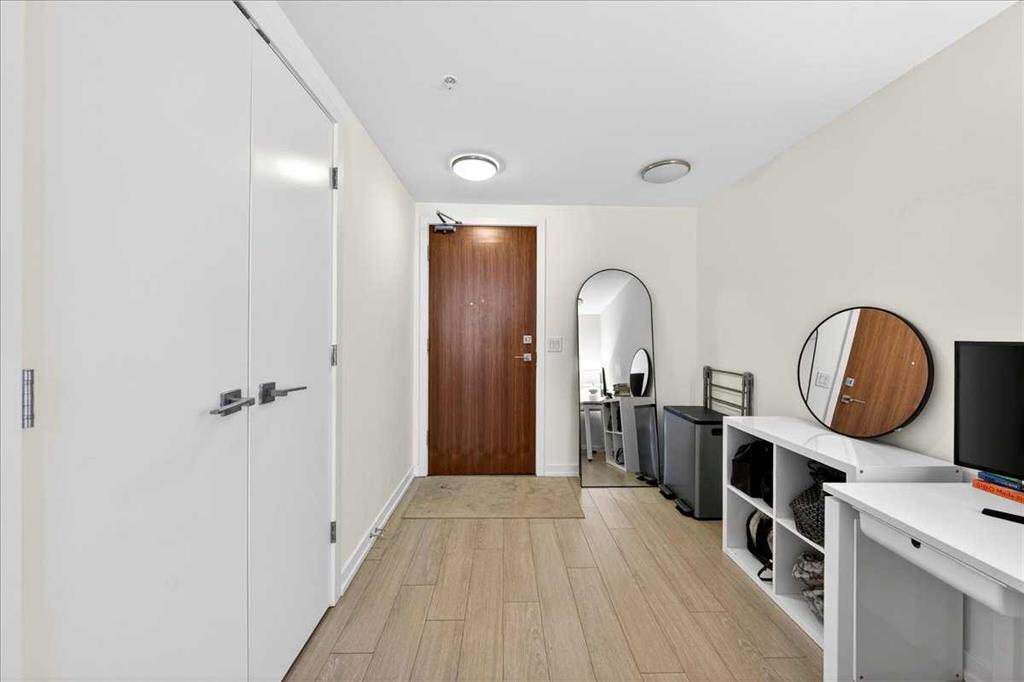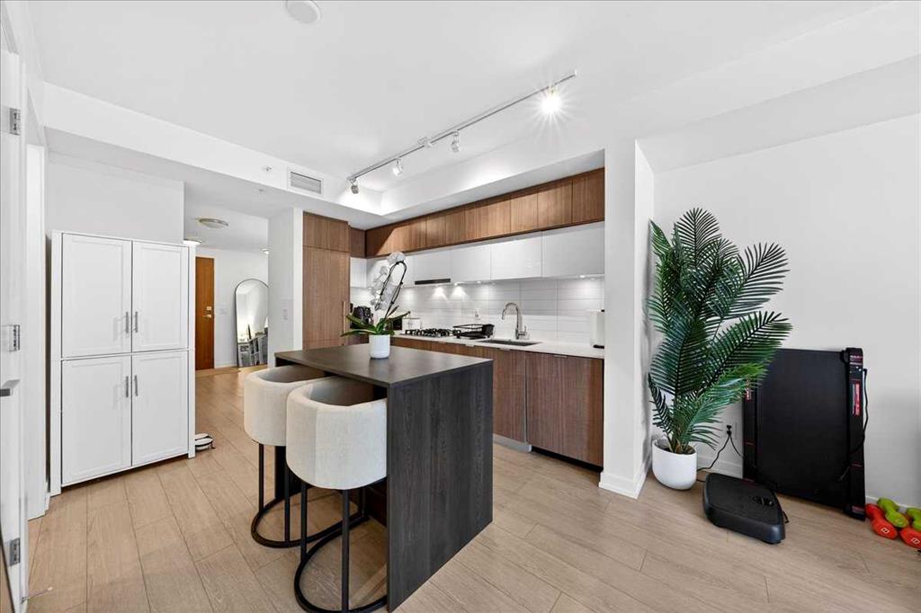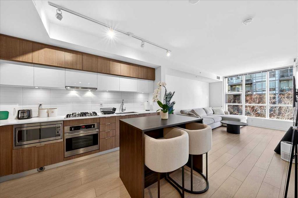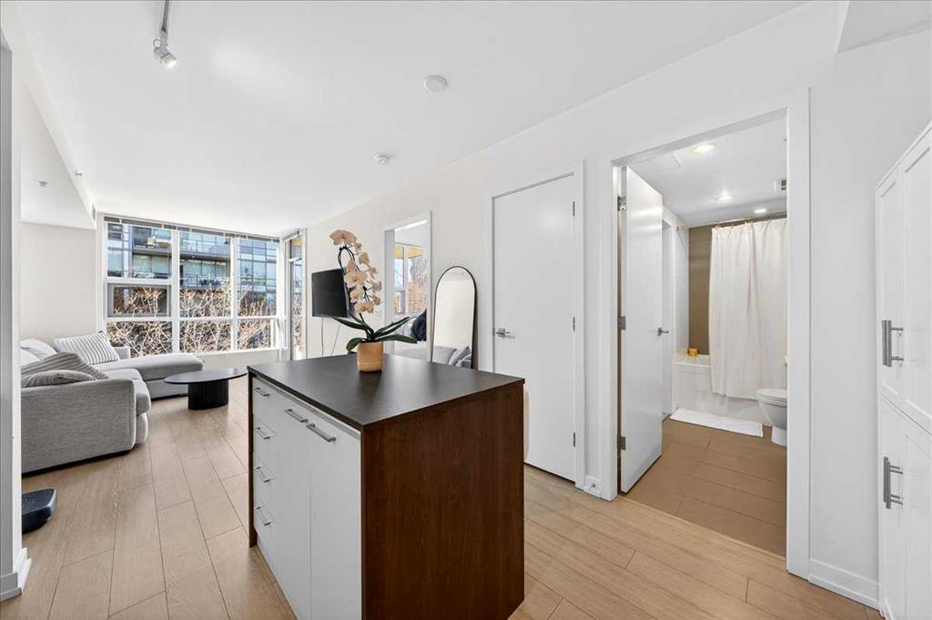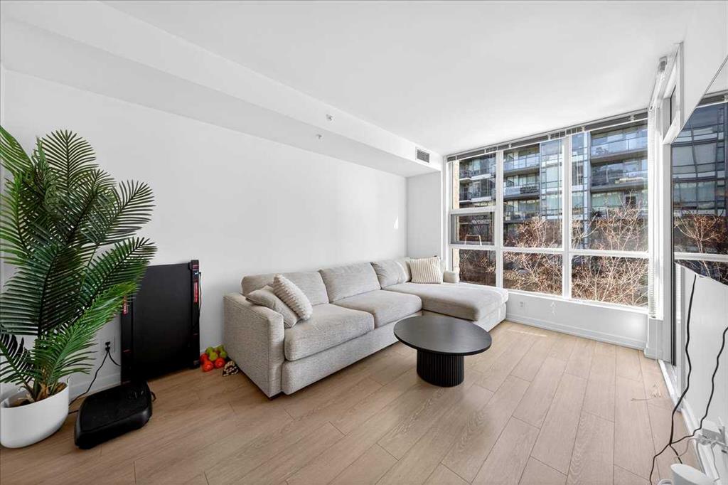 Experience refined urban living in this stylish riverfront residence offering approximately 601 sqft of thoughtfully designed living space in one of Calgary’s most desirable waterfront communities. This elegant 1-bedroom, 1-bathroom condo features a bright open-concept layout where the contemporary kitchen flows seamlessly into the inviting living area, creating an ideal space for both relaxing and entertaining. The spacious bedroom provides a comfortable retreat, while the well-appointed 4-piece bathroom and convenient in-suite laundry add everyday practicality. Step outside to your private balcony to enjoy fresh air and the vibrant urban surroundings. This exceptional home also includes underground heated parking and assigned storage, offering comfort and convenience year-round. Residents enjoy premium building amenities including a fitness center, hot tub, and party room, all while being just steps from scenic river pathways, parks, restaurants, cafes, and downtown amenities—perfectly blending luxury, lifestyle, and location.