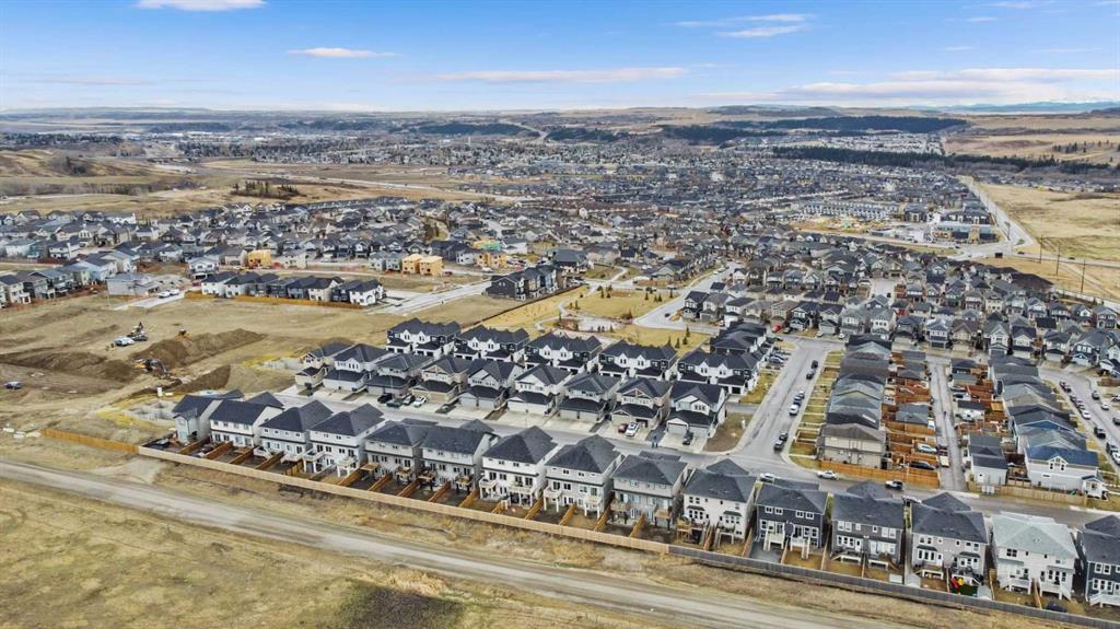 NO NEIGHBORS BEHIND - BACKING ONTO PARKS & RECREATION AREA - STUNNING MOUNTAIN VIEWS - FULLY FINISHED WALKOUT - OVER 2,200 SF - DOUBLE ATTACHED GARAGE - VACANT FOR QUICK POSSESSION... Experience elevated living in this meticulously crafted modern semi detached home, backing onto proposed park & recreation space offering over 2,200 sq ft of beautifully developed living space, stunning mountain views, walk-out finished basement, 3 spacious bedrooms, 3 bathrooms, and striking 9-foot ceilings throughout. With architectural details that balance sophistication and function, this home delivers comfort, style, and unbeatable value. As you step inside, you're welcomed by a bright, open-concept main floor—ideal for both daily life and entertaining. The chef-inspired kitchen is a true centerpiece, featuring elegant quartz countertops, stainless steel appliances, a gas range, and a generous central island perfect for prepping, dining, and gathering. The adjacent living room is anchored by a beautiful electric fireplace and is bathed in natural light thanks to oversized windows that frame unobstructed views of the mountains and open plains. Step out onto the private back deck to spectacular mountain views to the west and open fields to the north, perfect for BBQs or quiet evenings soaking in the scenery. Upstairs, the home continues to impress with a stunning bonus room showcasing soaring ceilings and custom-built-in cabinetry—perfect as a home office, lounge, or creative space. The expansive primary suite offers a tranquil retreat, complete with a sleek 3-piece ensuite and a large walk-in closet. Two additional well-sized bedrooms and a full bathroom offer comfort and flexibility for family or guests. The fully developed walkout basement adds incredible versatility to this home, with large windows, a stylish wet bar with a full size fridge, and custom cabinetry, it's the ideal space for a home theater, guest suite, or secondary living area. The walkout design opens to a private grade-level concrete patio and fully fenced yard. A large furnace/storage room offers additional practicality, with the option of adding a bathroom with rough in plumbing. Location is key, heritage hills offer an abundance of green space walking/bike paths and close proximity to schools, parks and all amenities with easy access to highway 1A leading you to the mountains in less than an hour. You're going to love this home, perfectly blending modern elegance with functional design and breathtaking views, this home is ready to impress. Book your viewing today!