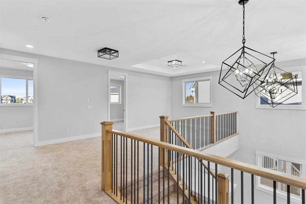 Exceptional value in the sought-after community of Kinniburgh! This spacious home sits on a quiet cul-de-sac and offers over 2,900 sq ft of living space with 5 bedrooms, 4 full bathrooms, and an attached triple garage — offered as-is through foreclosure proceedings. The home features an open-concept main floor with a family room with fireplace, dining area, bedroom, full bath, and a well-appointed kitchen with island, granite countertops, and a spice kitchen. The main floor bedroom with direct full bath access is a practical bonus for extended families. Upstairs you'll find 4 bedrooms — each with walk-in closets — 3 full baths, a bonus room, and convenient upper-level laundry. The upper level includes two master suites, with the primary featuring tray ceilings and a 5-piece ensuite. Additional highlights include 9 ft ceilings throughout, quartz/granite finishes, built-in features, and a walk-out basement. This is a rare chance to acquire a well-built home with premium finishes in an established neighbourhood at a foreclosure price. Property is being sold as-is — buyers are encouraged to conduct their own due diligence