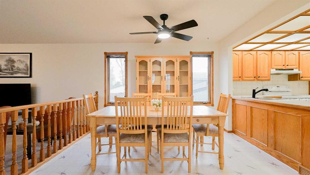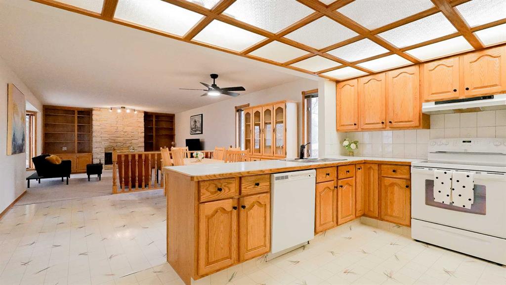 Welcome home to this beautiful and inviting 5-bedroom bi-level, ideally located in a quiet, family-oriented neighborhood close to schools, shopping, and parks — the perfect blend of comfort and convenience. The main floor showcases a large, functional kitchen with abundant cabinetry and generous counter space, ideal for everyday cooking or entertaining guests. The expansive dining area flows seamlessly into the back great room, featuring a stunning floor-to-ceiling stone wood burning fireplace — a true showpiece and cozy gathering spot. The front living room boasts large picture windows, filling the home with natural light. Two spacious bedrooms and an updated 4-piece main bathroom complete the upper level. Downstairs, the fully finished basement adds exceptional living space with three additional bedrooms, a modern updated 3-piece bathroom, and a comfortable family room perfect for movie nights or kids’ playtime. Step outside to enjoy the fully fenced yard, featuring space to add a garage, a covered deck, two storage sheds, and a concrete patio with a basketball net. Raised garden boxes provide a wonderful opportunity for those who love to garden, adding charm and functionality to the outdoor space. There’s plenty of room here for outdoor activities, entertaining, and relaxation. This well-maintained home offers flexibility, functionality, and room for everyone. Don’t miss your chance to make it yours!