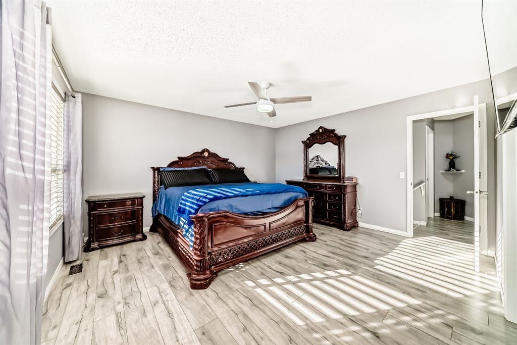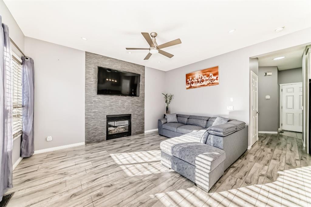 Welcome to this beautifully upgraded home located on a quiet street in the heart of Saddleridge. Thoughtfully designed with functionality and comfort in mind, this home offers an open-concept layout featuring 9 ft ceilings on the main floor, a spacious great room with a cozy gas fireplace, and a main floor laundry for added convenience. The modernized kitchen showcases a central island, gas range with stainless steel appliances, and ample cabinetry—perfect for everyday cooking and family gatherings. Upstairs, all bedrooms are generously sized, including the primary suite with a walk-in closet and a 4-piece ensuite. This home has seen numerous upgrades over the years, including a new kitchen, flooring, appliances, vinyl siding (2021), and roof (2025)—ensuring peace of mind for years to come. The basement features a one-bedroom illegal suite with a separate side entry and spacious living room, offering excellent potential for extended family living or additional rental income. Step outside to a large south-facing backyard complete with a deck, BBQ gas line, and a gazebo—ideal for entertaining or relaxing on summer evenings. Additional storage sheds provide plenty of room for tools and outdoor equipment. Located in the highly desirable community of Saddleridge, this property is just minutes from schools, playgrounds, shopping, LRT, and all major amenities—offering the perfect blend of comfort, convenience, and value. Don’t miss out—call your favourite REALTOR® today to book a private showing!