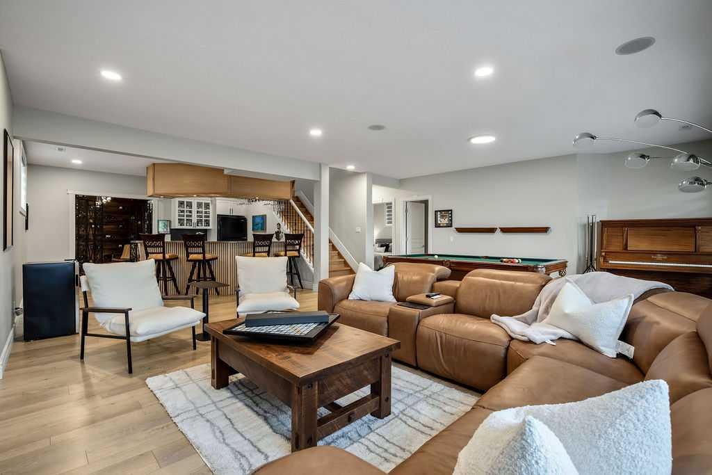 Sophistication, Comfort, Function – a home so meticulously refined, everyday living feels special. First time to market, this RARE sprawling 4-bed, 3-bath BUNGALOW WALKOUT backs directly onto a west facing natural wetland and pathway system — turnkey ready for its next chapter. This property has been top-to-bottom newly remodelled (LIST OF ALL UPGRADES IN SUPPLEMENTS). From the exterior cement fibre Hardy Board siding & trim, Stamped Concrete Driveway (freshly sealed Oct 1), Gemstone festive lights, Roof (2014), WIFI enabled irrigation & planter drip lines - curb appeal is at its finest. Soaring vaulted ceilings greet you throughout the main level while natural light pours through expansive windows dressed in motorized shades. The fully remodelled kitchen and breakfast nook presents high-end SS appliances (Miele, Sub-Zero), custom cabinetry, and stunning quartz counters. Open concept to the Living Room anchored by a sleek micro-cement fireplace and farmhouse collection engineered hardwood throughout. A formal dining room at the front of the home provides the perfect space for gatherings and celebrations. Enter the primary suite – expansive views of the protected wetlands greet you upon awakening. Completely speaking to luxury, the ensuite includes a steam shower (heated bench and floor tile), towel warmer, private water closet, double sink vanity and an extensive walk-in closet with custom built-ins. An additional bedroom on the main with full bath offers flexibility for family or guests. Laundry and mudroom are conveniently located off the garage. The HEATED (with thermostat) double attached has the capacity for 2 full size truck/suvs, NEW EPOXY floors, and a convenient hose bib for washing vehicles. Whether you’re hosting friends or enjoying a cozy evening in, the basement delivers the ultimate experience. This fully developed walkout is designed for both comfort and entertainment — a boiler heated in-floor slab keeps even the chilliest nights toasty warm. Cuddle up for a movie in-front of the custom built-ins or host the neighbourhood for a game of pool (pool table & ping pong topper included). A private wine/scotch room tucked behind the wetbar adds a touch of sophistication and exclusivity. This room offers an abundance of versatility – wine room/additional bedroom/gym/office…the flexibility of this space can easily evolve with the needs of your family. Two additional king-sized bedrooms provide comfort for family or guests alongside yet another full bathroom. French doors open to a private backyard complete with covered aggregate patio, mature trees and a pathway system only steps away. Even the utility room impresses – organized, oversized and ideal for storage. NEW HWT, NEW FURNACE, WATER SOFTENER, NEW A/C, NEW SUMP-PUMP. The entire home is also wired for sound with ceiling speakers and wall-mounted volume controls. Designed to celebrate lasting memories and life’s best moments - this home is yours to be lived in. *VIRTUAL TOUR AVAILABLE*