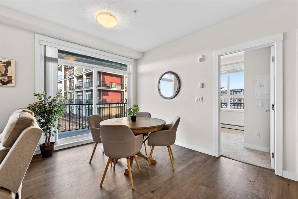 Welcome to this immaculate corner unit featuring TWO TITLED PARKING STALLS (one above ground and the other in the parkade). As you enter, you’re greeted by 9-foot ceilings, an abundance of natural light and a bright open-concept layout with durable luxury vinyl plank flooring throughout the main living space. The modern kitchen showcases modern shaker-style cabinetry with soft close drawers, quartz countertops, upgraded stainless steel appliances with a Samsung French-door refrigerator with ice maker, a sleek chimney hood fan, and a stunning marble herringbone tile backsplash. The extended island provides ample seating and is complemented by stylish pendant lighting, while a convenient pantry with built-in microwave adds extra functionality. The spacious primary bedroom features a walkthrough closet leading to a private ensuite with dual vanities. A second bedroom and full four-piece bathroom offer flexibility for guests, family, or a home office. Step outside to enjoy the generous wrap-around corner balcony complete with a BBQ gas line—perfect for entertaining or relaxing. Ideally located minutes from shopping, dining, and everyday amenities, with easy access to Macleod Trail for a quick commute. Don’t miss this exceptional opportunity—call your favourite realtor to book your private showing today.