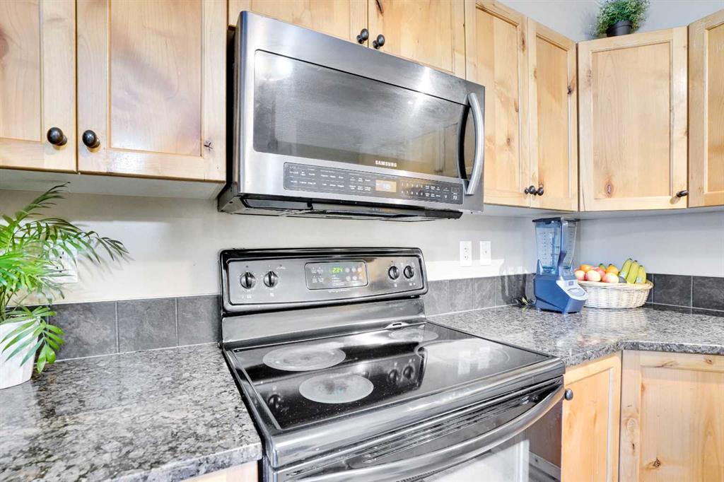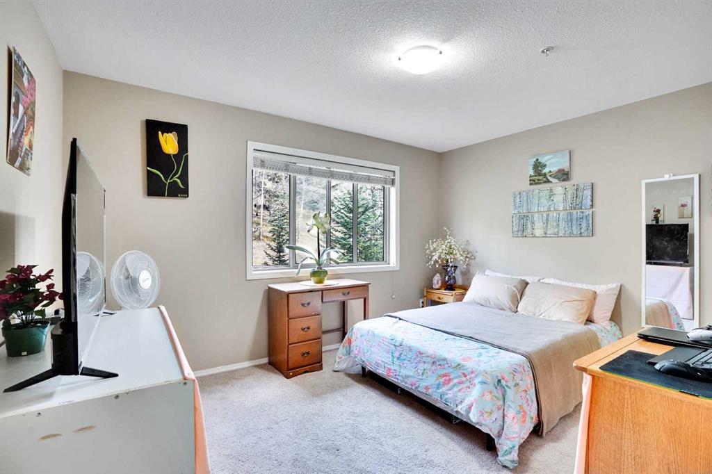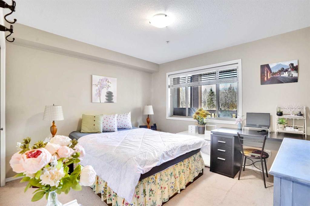 Welcome to your new home! This meticulously kept 3-BEDROOM, CORNER UNIT comes with a SPACIOUS FOYER and an OPEN FLOOR PLAN. The L-shaped kitchen boasts of NATURAL WOOD CABINETS, GRANITE COUNTERTOPS and a BRAND NEW DISHWASHER. The dining room is at the center of the home and open to the HUGE LIVING ROOM with a cozy FIREPLACE and serene views of the mountains and woodlands. The spacious BALCONY is perfect for your morning coffee, afternoon tea or simply soaking in the breath-taking views! All the THREE GOOD-SIZED BEDROOMS fit a queen bed and even have room for a desk and more cabinets. The 4-piece bath comes with a SOAKER TUB and a vanity with UNDERMOUNT SINK and GRANITE COUNTERTOP and IN-SUITE LAUNDRY with STACKED FRONTLOAD WASHER & DRYER. This wonderful apartment unit comes with an ASSIGNED STORAGE LOCKER (#72) as well as 2 PARKING SPACES, one TITLED UNDERGROUND PARKING (#110) and an ASSIGNED OUTDOOR SURFACE PARKING STALL with plug-in (#35). This well-managed Blakiston condo complex offers OUTSTANDING AMENITIES including a FULLY EQUIPPED FITNESS CENTER, PARTY ROOM, HOBBY ROOM or MEETING ROOM, WORKSHOP, LIBRARY & READING AREA, TONS OF VISITOR PARKING and a convenient DOOR BUZZER SYSTEM for your online shopping deliveries. This condo complex is just steps to a DOG PARK, CATHOLIC CHURCH, scenic WALKING TRAILS and BIKE PATHS. And short-term rentals or AirBnB's are NOT allowed in the building. There is amazing value in this home as it is currently the BEST & LOWEST PRICED 3-bedroom home in Canmore. Don’t miss out, book your showing today!