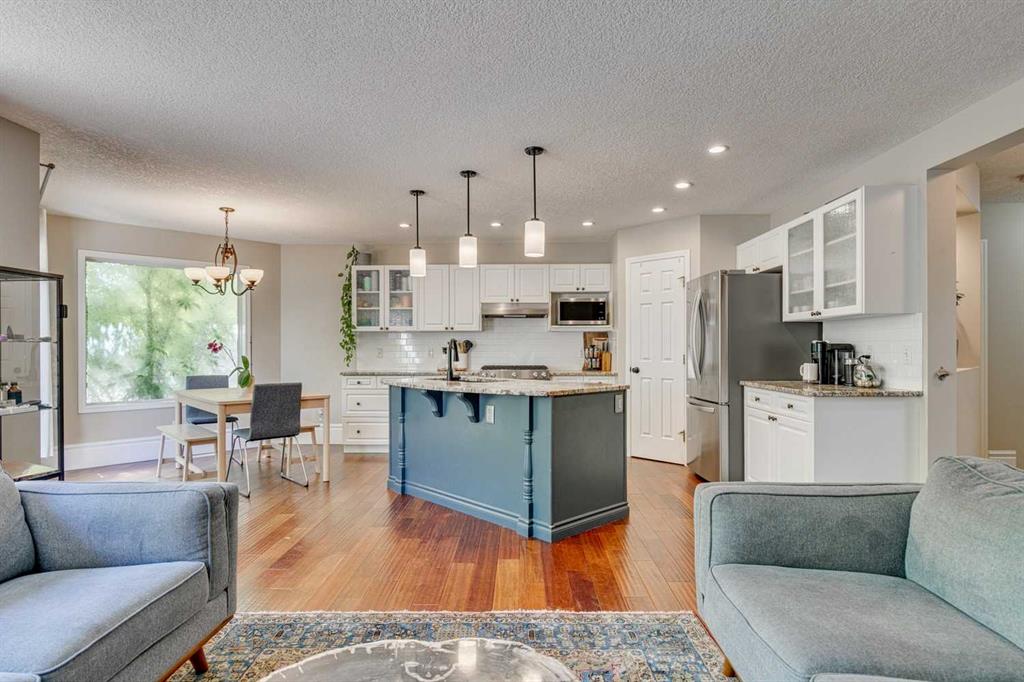 Welcome to 219 Chapalina Place SE, nestled in the sought after community of Lake Chaparral. Situated on a quiet cul-de-sac, this home offers an ideal sanctuary for family life. Step inside and enjoy an abundance of natural light, engineered hardwood flooring and an open concept design, perfect for entertaining. The upgraded kitchen is the anchor of the main floor layout and features granite counters, white subway tile, stainless steel appliances (including a gas stove and water/ice to the refrigerator), a large pantry and plenty of room for extra helpers when cooking dinner! Just off the kitchen is a spacious dining area and living room…all of which enjoy beautiful views of the private backyard. A half bath and mudroom complete the main floor. Escape to the 2nd level for a family movie night in the large bonus room, or head down the hall and enjoy the large primary bedroom complete with 4 piece ensuite and walk in closet as well as 2 addl bedrooms and a full bath. The basement has been fully finished with a large rec room and full bath/laundry, as well as the ability to add a bedroom easily, if you wish. After a long day, you’ll want to head outdoors to unwind amidst mature tree’s, a serene water pond, natural gas BBQ line and underground sprinklers for effortless maintenance. Additional updates to the home include Central Air Conditioning, new shingles, siding and garage door. Chaparral is widely sought after for its lake access and year round amenities, as well as the proximity to schools, shopping, restaurants and scenic trails, all of which offer an unparalleled lifestyle for your family’s enjoyment. This gem in Chaparral, is ready to welcome you home for the summer!