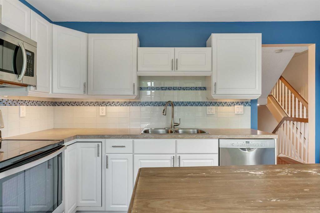 Nestled in a quiet, tree-lined cul-de-sac in the desirable community of Coach Hill, this charming 3-bedroom, 2.5-bath townhome offers style, comfort, and convenience, as the largest plan in the complex. The main floor features an updated white kitchen with modern backsplash, stainless steel appliances, and hardwood floors that flow seamlessly into the bright, open living and dining areas. Upstairs, you’ll find three spacious bedrooms, including a primary suite with updated baths and plush, luxurious carpets. The unfinished basement provides plenty of opportunity for additional living space or storage. Enjoy the privacy of your dedicated, spacious deck (not shared with another unit) backing onto green space in this well-maintained, pet-friendly complex (with board approval). Complete with a single garage and extra parking, this home is part of a well-managed community that offers peace of mind and pride of ownership. There is a community garden to allow your "green thumb" to work for you! Immaculately maintained with many exterior updates over the years, this complex shows pride of ownership!