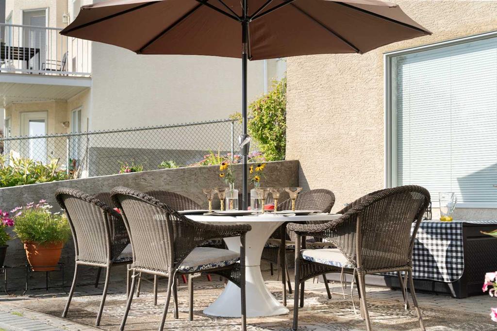 Backing onto the 16th hole of The Hamptons Golf Course, this meticulously maintained, single-owner walkout home offers nearly 4,000 sq. ft. of developed living space. Enjoy unobstructed east-facing sunrise views over the fairway, pond, and city, plus night-time city lights. The main floor features an open-concept kitchen, dining, and family area with gas-burning fireplace, main floor den with built-in cabinetry, and an upper deck with frameless glass railing and two gas connections for flexible outdoor living. The kitchen includes Sub-Zero 36” built-in fridge/freezer, Wolf 30” dual-fuel range, Panasonic microwave, Miele dishwasher, and hood fan, while Hunter Douglas window coverings enhance the main spaces. Upstairs, the home offers four spacious bedrooms, including a primary suite with custom ensuite (2015) featuring a standalone soaking tub, in-floor heating, glass-enclosed shower with rain head, custom cabinetry, and Kohler designer fixtures. TV mounts are in the living room and master bedroom. The walkout basement extends living space with a large office wired for internet and dual phone lines, custom maple cabinetry with media centre and bookcase, second gas-burning fireplace, and additional flex room ideal as a bedroom, gym, or hobby space. Direct access to a large interlocking patio provides private golf course views. An oak standalone bookcase at the bottom of the stairs is included. Other features include LG washer & dryer, two Amana high-efficiency furnaces, central A/C, two water heaters (2025), Kinetico water system, Vacu-Flo system with attachments, updated vinyl-clad windows (2015–2021), oversized two-and-a-half-car garage with large driveway, and a programmable in-ground irrigation system. Located on a quiet street and maintained as a no-pet home, this property combines exceptional design, premium finishes, and a premier golf course setting in The Hamptons, close to parks, schools, walking paths, and convenient access to Stoney Trail, Country Hills Boulevard, and Shaganappi Trail.