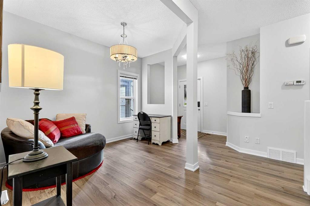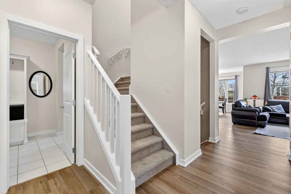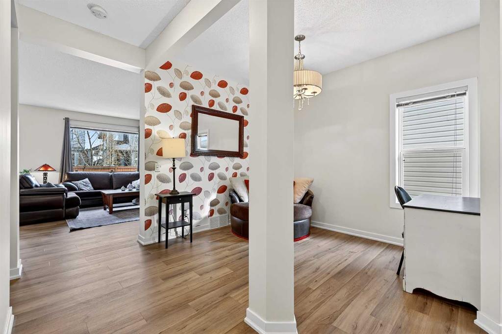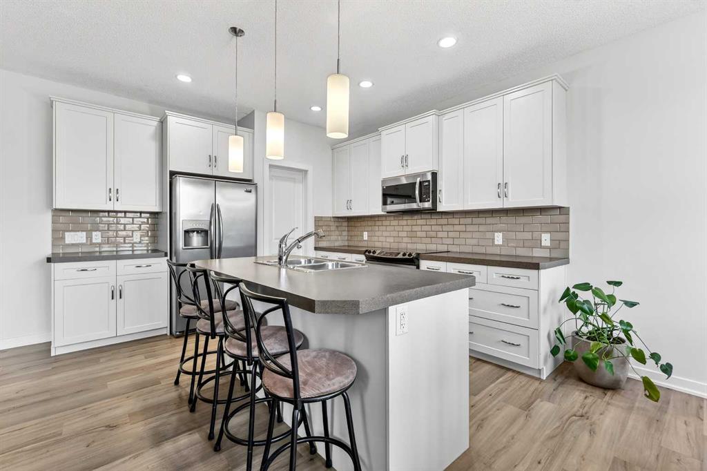 Welcome to this fully finished 5-bedroom home in the highly desirable lake community of Auburn Bay in southeast Calgary. A neighborhood known for its year-round lake community amenities, parks, pathways, strong community atmosphere, and access to quality schools that make it especially attractive for families. Offering three levels of developed living space, this home delivers exceptional flexibility and long-term value. The main floor features durable luxury vinyl plank flooring and a bright open-concept layout that seamlessly connects the kitchen, dining, and living areas — ideal for both everyday living and entertaining. The modern white kitchen is anchored by a large island, stainless steel appliances, and ample cabinetry. A front flex room provides versatility for a home office, formal dining space, or additional sitting area. The living room is warmed by a gas fireplace, creating a comfortable gathering space year-round. Upstairs, you’ll find four bedrooms, including a spacious primary suite complete with a full ensuite featuring a tile-and-glass shower and separate soaker tub. The fourth upper bedroom offers flexibility as a bedroom, playroom, or bonus room depending on your needs. An additional full bathroom and newly installed carpet throughout the upper level adds comfort and move-in-ready appeal. The fully finished lower level expands the home’s functionality with a fifth bedroom, full bathroom, generous family room with a second gas fireplace, and a dedicated tech or study space — ideal for guests, teenagers, or multi-generational living. Step outside to enjoy the fully landscaped east-facing backyard, complete with an oversized full-width deck designed to capture the warm sun. Perfect for summer entertaining and relaxing evenings. A double attached garage adds convenience and storage. Recent updates provide peace of mind, including new shingles (2025), new hot water tank (2025), and furnace cleaning and maintenance completed in 2025. Located in a community celebrated for its lake amenities, nearby schools, playgrounds, and quick access to major routes and shopping, this home offers the space families need with the lifestyle and value today’s buyers are seeking.