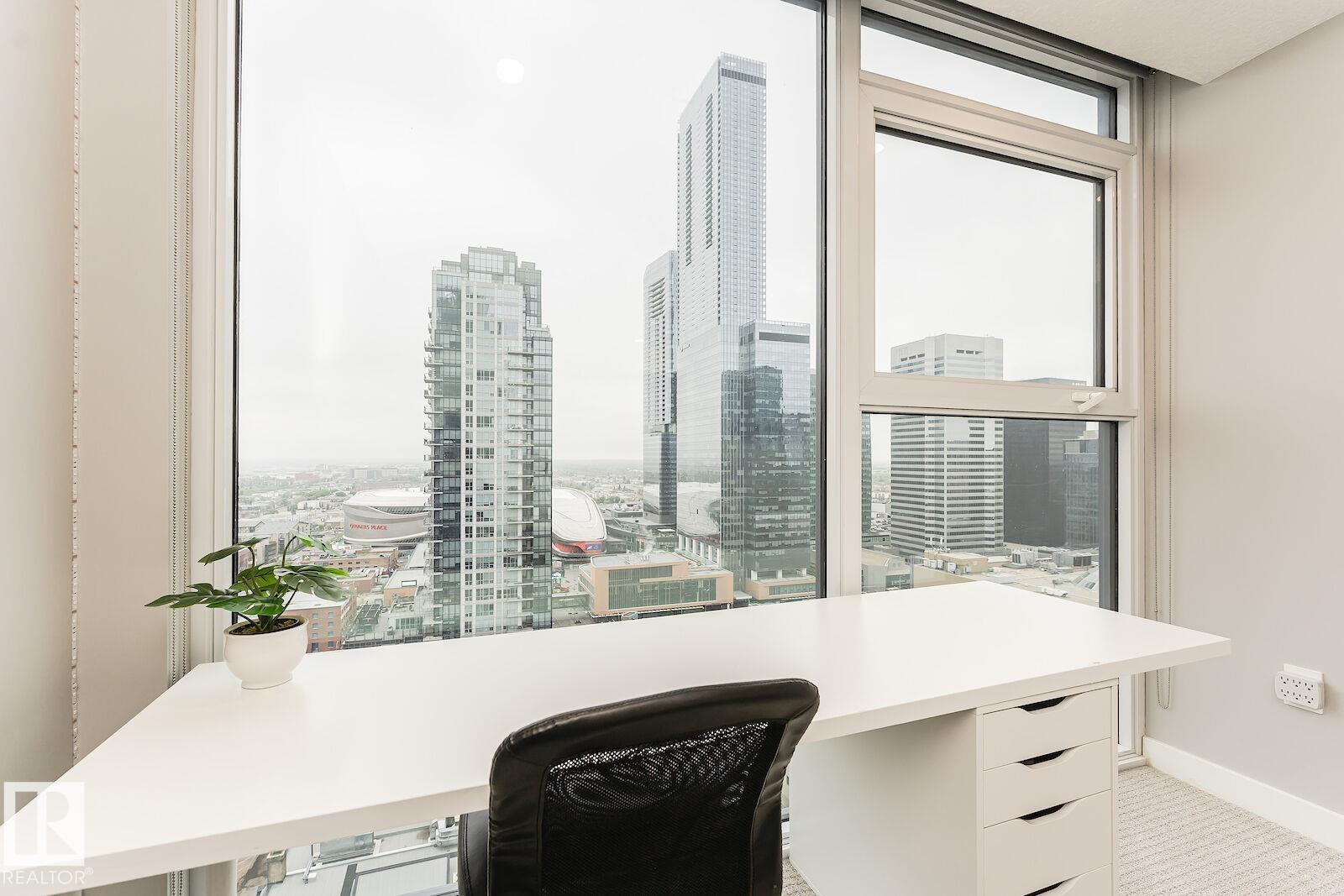 Live in style at The Encore Tower in the heart of downtown Edmonton! This beautifully furnished 2-bedroom, 2-bathroom condo showcases modern design, neutral tones, and a bright open-concept layout that feels both stylish and functional. The sleek kitchen offers a two-door fridge, stove, dishwasher, hood fan/microwave, and all window coverings, with furnishings carefully chosen to complement the space. The spacious living and dining area flows seamlessly to a private balcony with stunning city views—perfect for relaxing or entertaining. The primary suite features a walk-in closet and private 3-piece ensuite, while the second bedroom is conveniently located near the common 4-piece bath. With in-suite laundry, ample storage, and a fully furnished setup, this home is move-in ready. Steps to Rogers Place, Ice District, LRT, shopping, restaurants, and more, this condo offers the ultimate in comfort, convenience, and vibrant downtown living! You're really going to love this one!