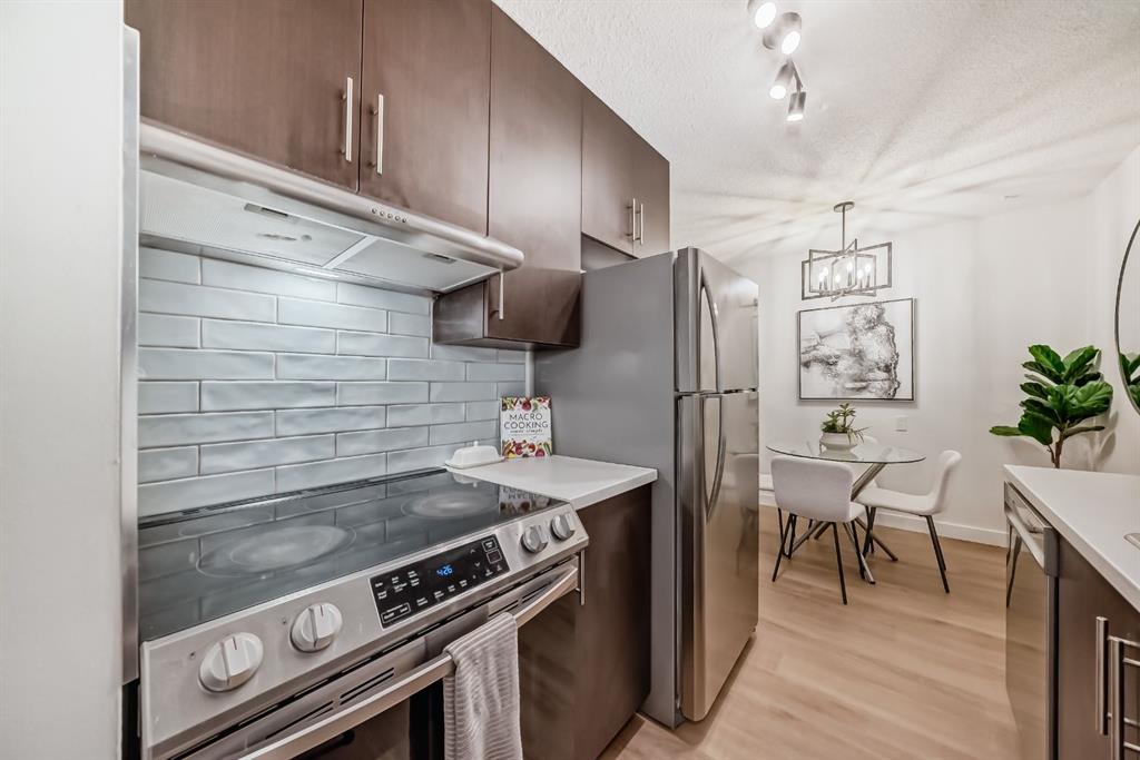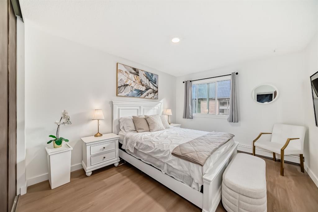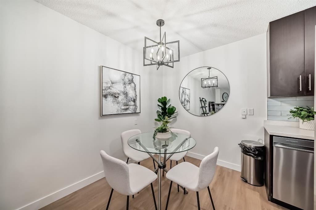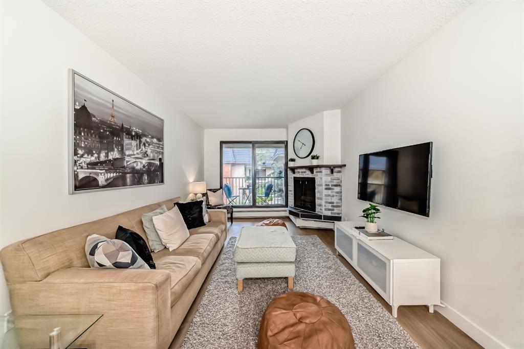 Freshly renovated 2-bedroom + versatile den condo in sought-after Varsity. From the moment you walk in, the space feels fresh, light, and airy. Updates include luxury vinyl plank flooring, new paint, updated tile and baseboards, modern lighting and faucets, a reglazed tub, and stainless steel kitchen appliances—creating a clean, contemporary, like-new feel throughout. The well-designed layout features a large primary bedroom that easily fits a king-size bed, a flexible den for a home office or extra storage, and a cozy stone-faced gas fireplace. Sliding patio doors open to a quiet, private balcony overlooking a peaceful courtyard with a peek-a-boo view of Market Mall. This adults-only (25+) building is well managed and includes an on-site manager. Practical perks: in-suite laundry, an assigned underground parking stall, visitor parking, and optional additional storage for $40/month. There’s also free street parking right beside the building on 50th Street NW. The location is hard to beat. Market Mall is steps away with groceries, pharmacy, Tim Hortons, restaurants, and retail. The adjoining professional centre offers medical, dental, and optical services, and the nearby University District continues to add trendy shops and amenities. Transit access is excellent, major routes are close for easy commuting, and outdoor lovers will appreciate being a short walk to Dale Hodges and Bowmont Park with river views, pathways, and playgrounds. A great opportunity to own a beautifully updated condo in one of Calgary’s most desirable communities - book your showing today! Possession timing is flexible.