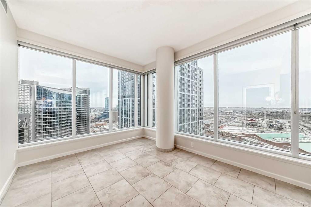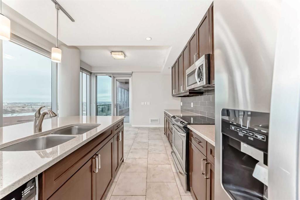 Click brochure link for more details. Experience the best of downtown living in this bright and stylish 22nd-floor corner unit at NuEra. With floor-to-ceiling windows and 9-foot ceilings, this home is filled with natural light and offers panoramic views that stretch for miles — including a front-row seat to the Stampede Grandstand show and fireworks, right from your bed! The open-concept kitchen is perfect for both everyday living and entertaining, featuring custom cabinetry, granite countertops, stainless steel appliances, and a large island that flows effortlessly into the living and dining spaces. The primary bedroom is a private retreat with a walk-in closet and a spa-inspired ensuite complete with a soaking tub. The second bedroom is located on the opposite side of the unit for added privacy and enjoys its own spectacular views with easy access to a modern 3-piece bathroom. Additional features include in-suite laundry, secure underground parking, a storage locker, designated bike storage, and visitor parking. Residents also enjoy access to premium building amenities, including a fully equipped fitness centre and professional concierge service. Located in the heart of Calgary’s vibrant Victoria Park, you’re just steps from 17th Avenue, the C-Train, Sunterra Market, and some of the city’s best dining, shopping, and entertainment. This is luxury urban living at its finest — a rare opportunity to own a spectacular home with unmatched views and convenience.