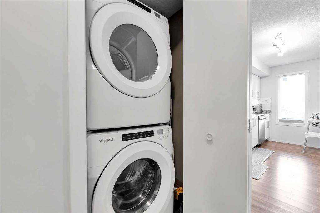 Welcome to this stylish and efficient 2-bedroom, 1-bath condo in the vibrant Skyview Ranch community. Located on the second floor, this bright unit features upgraded LVP floors (2023) throughout and open concept living. Enjoy your north-facing balcony, ideal for morning coffee or evening relaxation. The kitchen opens to the living area, maximizing natural light and functionality in this well-designed space. This secure unit offers underground heated parking, and the building features visitor parking, with fantastic amenities — including an on-site daycare (fee-based), fitness center, and common/party room. Upgrades throughout include FRESH PAINT, and a NEW WASHER (2023). NEW tile backsplash and undercabinet lighting (2023), with granite counter tops in kitchen and washroom, with soft close cabinets, and stainless-steel appliances complete this unit. Conveniently located near schools, shopping, and major routes, this move-in-ready condo is a great opportunity to own in one of Calgary’s communities!