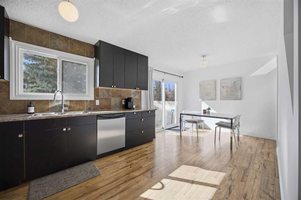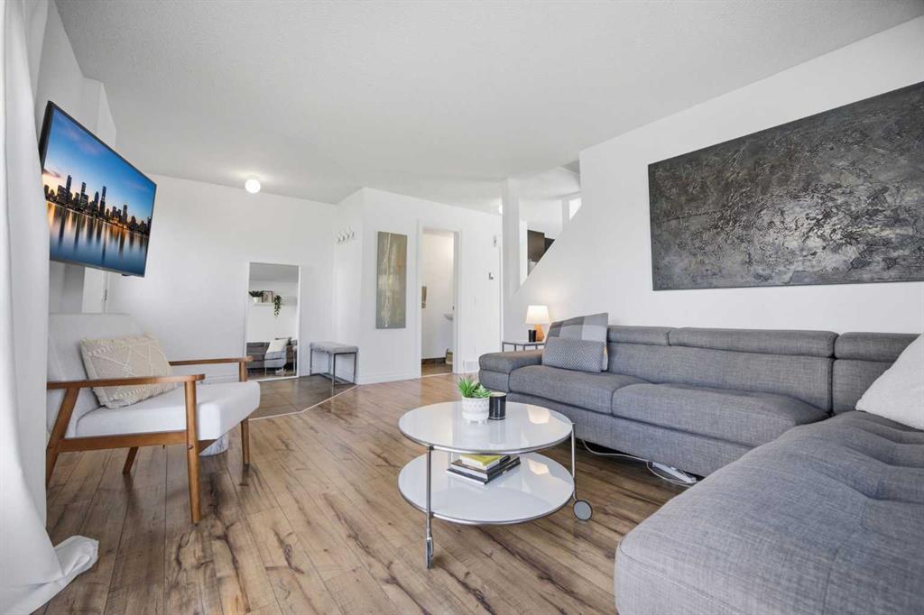 **Open House Saturday, April 25 12:00pm-3pm**| Don't miss this attractively priced and thoughtfully renovated 2-bedroom + den END UNIT boasting 1,168 square feet of bright, open living area. Recent updates provide peace of mind and modern appeal, including newer flooring, newer windows, a full kitchen renovation, and updated fencing. On the main floor you will be immediately greeted with a sunny and spacious living room flowing into renovated kitchen and dining room with sliding patio doors. The upstairs features a generous sized primary bedroom, 4 piece bathroom, second bedroom and a versatile den. Enjoy your south facing private backyard, which features a beautiful stamped concrete patio for a low-maintenance outdoor retreat. Fantastic walkability defines this location, as you are just steps away from coffee, groceries, fuel, entertainment, and parks. Living stays affordable with low condo fees and convenience is unmatched with your parking stall located just a couple of steps from your door. With unlimited street parking right outside, in-suite laundry, and plenty of storage, this home is as practical as it is charming. Flexible possession is available, so don't miss out—call your favorite Realtor TODAY for more information!