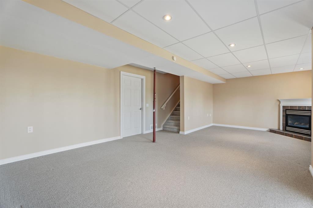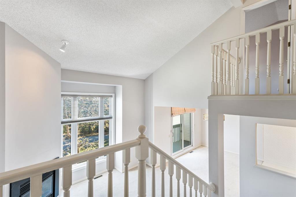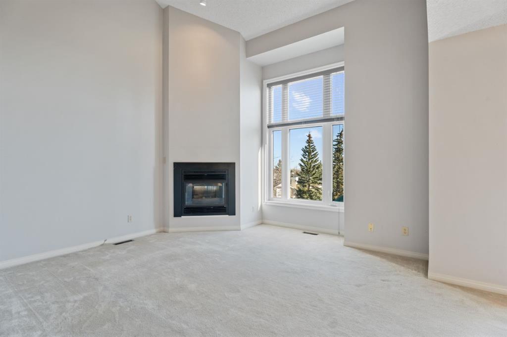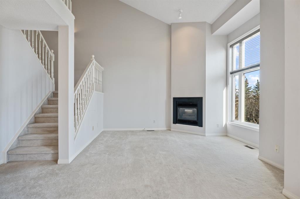 Welcome home to this 2-bedroom, 2.5-bathroom townhome in Sandringham (Sandstone Valley) — offering a bright and comfortable layout surrounded by mature trees and green space. The main floor features a large kitchen with plenty of storage, opening to a spacious dining area and a large living room with a stunning vaulted ceiling that soars up to the second floor. A cozy gas fireplace and upgraded triple-paned windows on the main and upper levels fill the space with natural light while enhancing comfort and efficiency. Step onto your private balcony and enjoy the peaceful setting — this home backs directly onto a park and the community pathway system, providing privacy and a connection to the outdoors. A half bath and access to the attached, insulated single garage complete the main level. Upstairs, you’ll find two generous bedrooms, each with its own 4-piece ensuite bathroom. The primary suite includes a vaulted ceiling, a large walk-in closet and easily accommodates a king-size bed. The finished walkout basement is bright and versatile, featuring another gas fireplace and direct access to a private yard — ideal for a recreation room, home office, or gym. There’s also a laundry room with washer and dryer, plus a rough-in for a future bathroom. This is not a condo, but the community has an HOA that covers landscaping and maintaining restrictive covenants for an annual fee of $1,428.57 ($124.46/month), saving you on costly condo fees. Located on a quiet street, the home is close to schools, walking paths, playgrounds, shopping, and Nose Hill Park. Commuting is convenient via 14th Street, Stoney Trail, and Deerfoot Trail, while local amenities include parks, trails, and family-friendly recreation right at your doorstep. Check out the virtual tour — quick possession available!