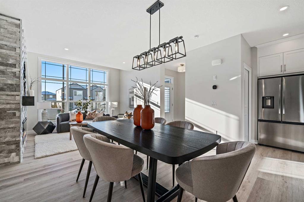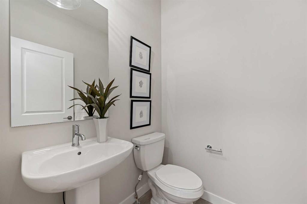 Genesis Builders introduces the Eli - a luxury street-side luxury townhome with NO CONDO FEES! The Eli townhome features an attached double garage and a rooftop patio, offering low-maintenance living. The thoughtfully designed home offers almost 1600 sq ft. plus an unfinished basement with 9-foot ceilings, ready for your ideas. Large windows and soaring ceilings on the main floor let natural light fill the open-concept living space. The chef-inspired kitchen features sleek cabinetry and stone countertops and is well-equipped with stainless-steel appliances. The kitchen is tucked away yet still feels open and inviting, providing ample room for activities in the open-concept dining and living room. A floor-to-ceiling tiled fireplace is the living room's focal point. Complementing the main floor is a convenient half bath, storage, and access to the attached double garage, which is large enough for a truck. Venturing upstairs, you will find a spacious primary retreat with a spa-like ensuite featuring a shower, his-and-hers sinks, and a walk-in closet. Two additional bedrooms, a full bathroom, a flex room, a 4-piece bathroom, and laundry facilities complete the upper level. Enjoy spending time on your upper rooftop patio, situated above the garage, which is an excellent space for entertaining. Bayview is a beautiful community with parks, benches and pathways that meander throughout the community and along the canals. Kids and adults alike will enjoy the outdoor basketball nets, gym, amphitheatre, and tennis courts, which will convert into a skating rink in the winter. Come and see for yourself all the amenities the community has to offer!