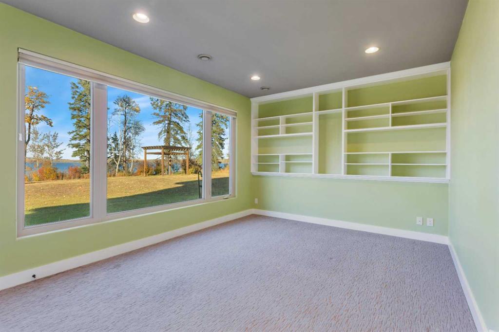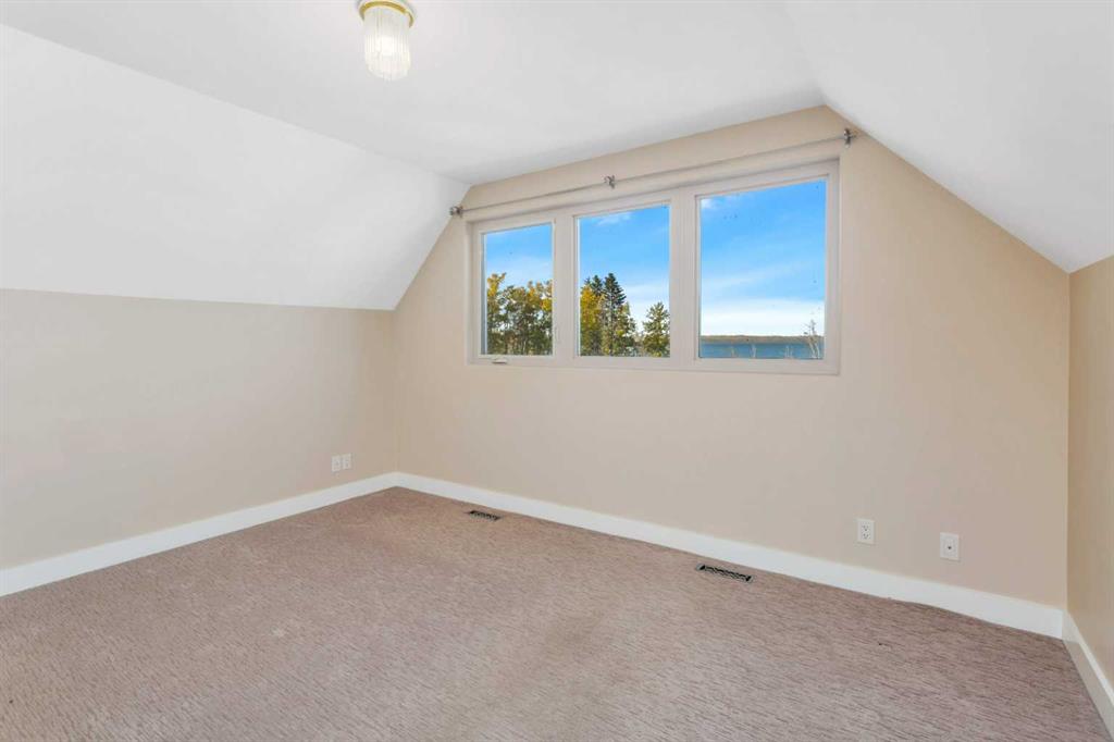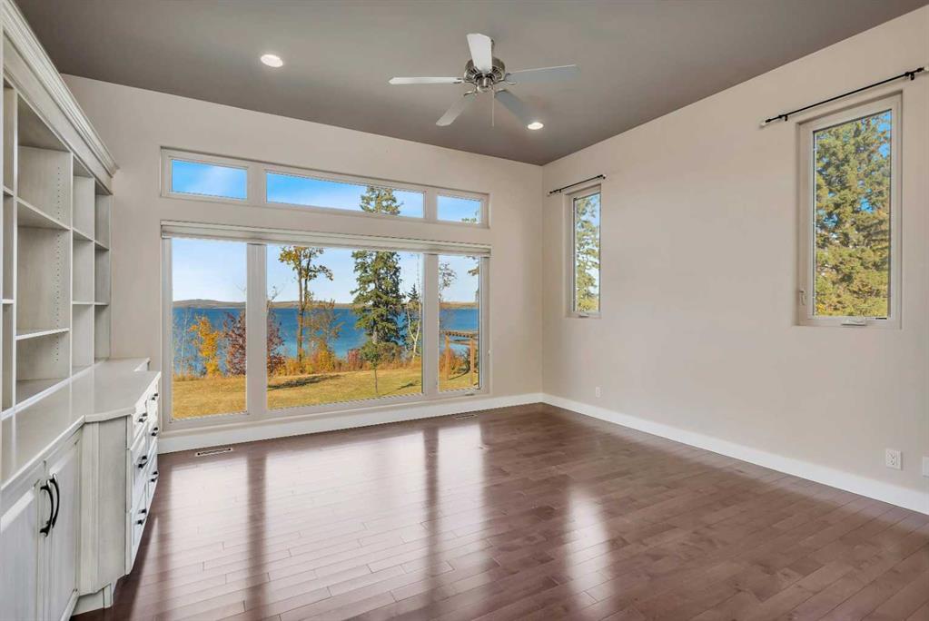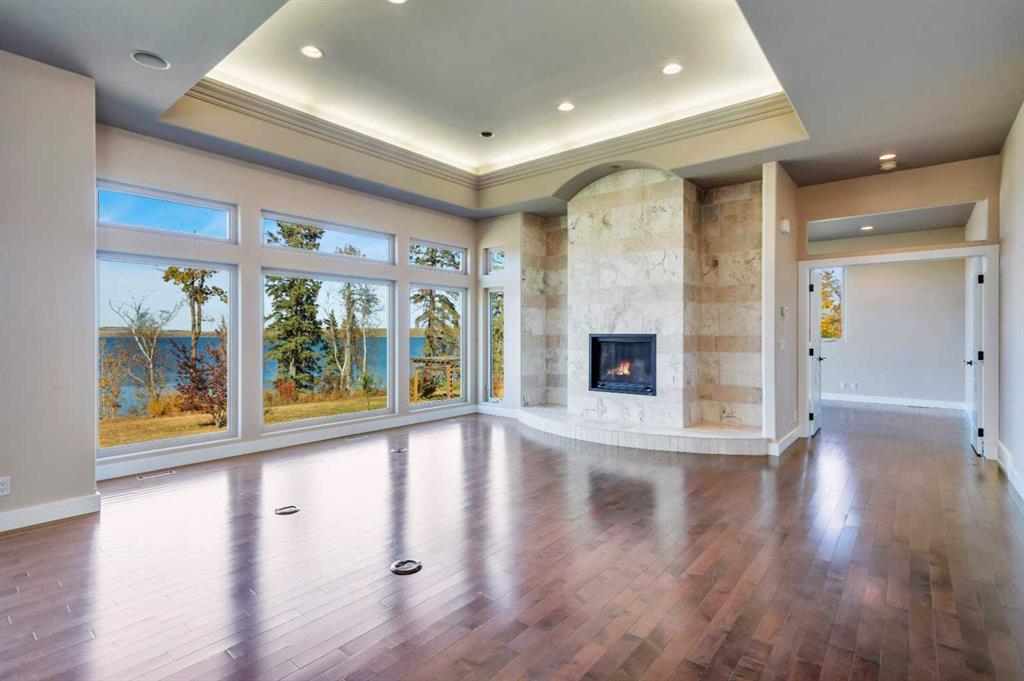 A rare opportunity to own an exceptional lakefront estate on 74 acres of prime Alberta countryside. This prestigious walkout bungalow offers an unmatched blend of luxury, privacy, and natural beauty, all with Riparian water rights. Located on 22108 Township Road 392 in Lacombe County, this residence exudes timeless elegance with custom finishes and breathtaking lake views throughout. Step inside to a chef-inspired kitchen, complete with granite countertops, custom cabinetry, and a layout designed for both daily living and entertaining. The expansive living room features coffered ceilings, a grand marble-faced fireplace, and floor-to-ceiling windows that showcase unobstructed water views. The primary retreat is a sanctuary of its own, with built-in cabinetry, panoramic lake-facing windows, a spa-inspired ensuite with walk-in shower, and an impressive walk-in dressing room. The lower level is built for entertaining, boasting a wet bar, spacious family room, and walk-out access to a covered patio, creating seamless indoor-outdoor living. Three large bedrooms downstairs offer comfort and scenic views. A bonus guest suite above the garage adds flexibility and privacy for visitors. The property includes a second home (not part of the listing) and is currently undergoing boundary adjustments, with new legal registration forthcoming. Whether you're dreaming of a private retreat, family estate, or a legacy property, this vacant, ready-for-viewing home offers unparalleled lifestyle potential.