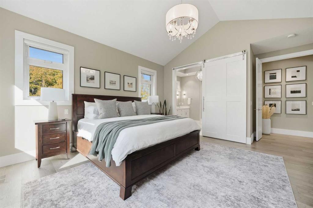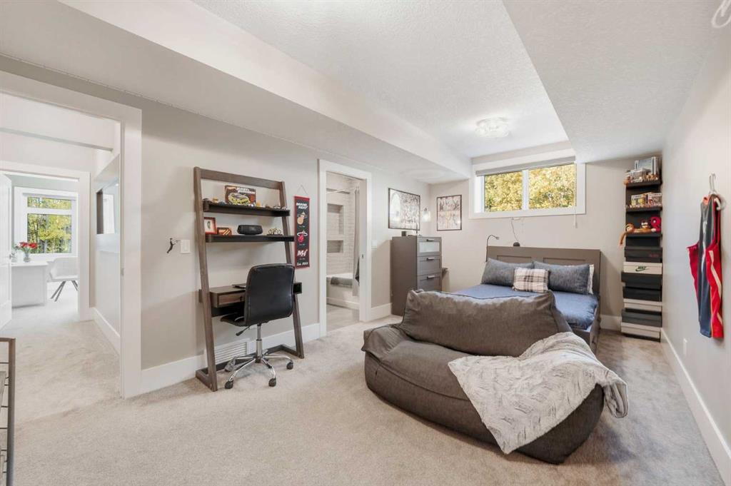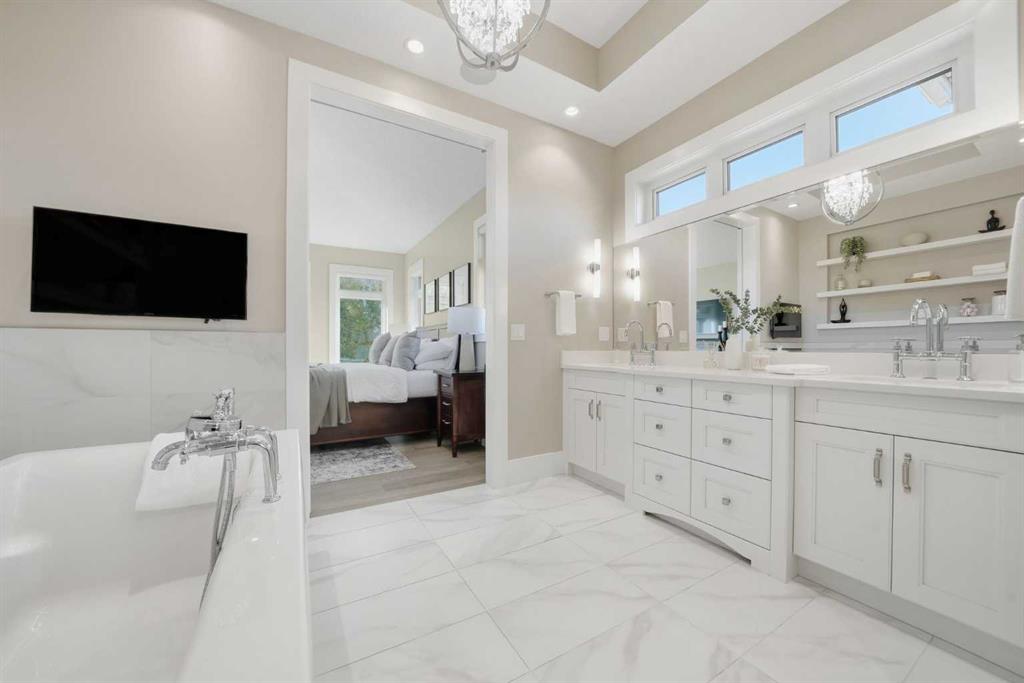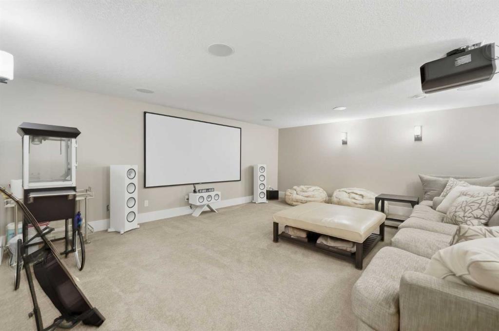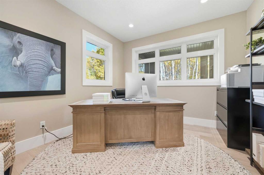 Welcome to this exceptional family acreage retreat in the peaceful community of Eagle Bend Estates, set on nearly 3 acres of beautifully landscaped grounds just minutes south of Calgary. This stunning 3+2 bedroom, 4.5 bath bungalow combines timeless design, quality craftsmanship, and modern comfort—perfect for families seeking space, serenity, and connection to nature without sacrificing convenience. Step inside to discover a warm, inviting main level featuring over 2,400 sq ft of thoughtfully designed living space. Vaulted ceilings and large windows flood the open concept great room with natural light, complementing hardwood floors and a striking feature fireplace that anchors the space. The gourmet kitchen is the heart of the home—designed for family gatherings and entertaining alike—with sleek quartz countertops, a large centre island, built-in appliances including a Miele steam oven, and a fully paneled fridge and freezer for a seamless custom look. Adjacent to the kitchen, the spacious dining area and sunroom open to a covered patio for effortless indoor-outdoor living. The primary suite is a peaceful retreat with a generous walk-in closet and a luxurious ensuite featuring a soaker tub, steam shower, and dual vanities. Two additional bedrooms (one currently used as an office) on the main level share a stylish 3-piece bath, while a well-planned mudroom and laundry area enhance everyday functionality. The fully developed lower level expands the living space with a large family and games area, wet bar, media room, two additional bedrooms each with a private ensuite—ideal for teens or guests. Comfort and quality are found throughout with central A/C, built-in sound, and abundant storage. Outdoors, this property truly shines. A paved lane leads to the home, framed by mature trees and meticulous landscaping. The oversized triple attached heated garage boasts 14-foot ceilings—perfect for large vehicles, hobbyists, or additional storage. A covered deck with infrared heaters, outdoor speakers and custom outdoor kitchen with BBQ oven and built-in grill create an ideal setting for outdoor entertaining. The nearly 3-acre lot includes gutter guards on the house, manicured lawns, a hot tub, greenhouse, and a sport court supplied by its own dedicated well, separate from the domestic well serving the home. Designed for families who love to live, entertain, and play, this property balances practicality with luxury. With underground sprinklers, thoughtful irrigation, and ample space to enjoy every season, it offers true country living with city convenience just minutes away. Located in a friendly, sought-after community close to schools, shopping, and major routes, this home provides the perfect blend of rural tranquility and urban accessibility. A rare offering where quality, comfort, and lifestyle come together—welcome home to Eagle Bend Estates.
