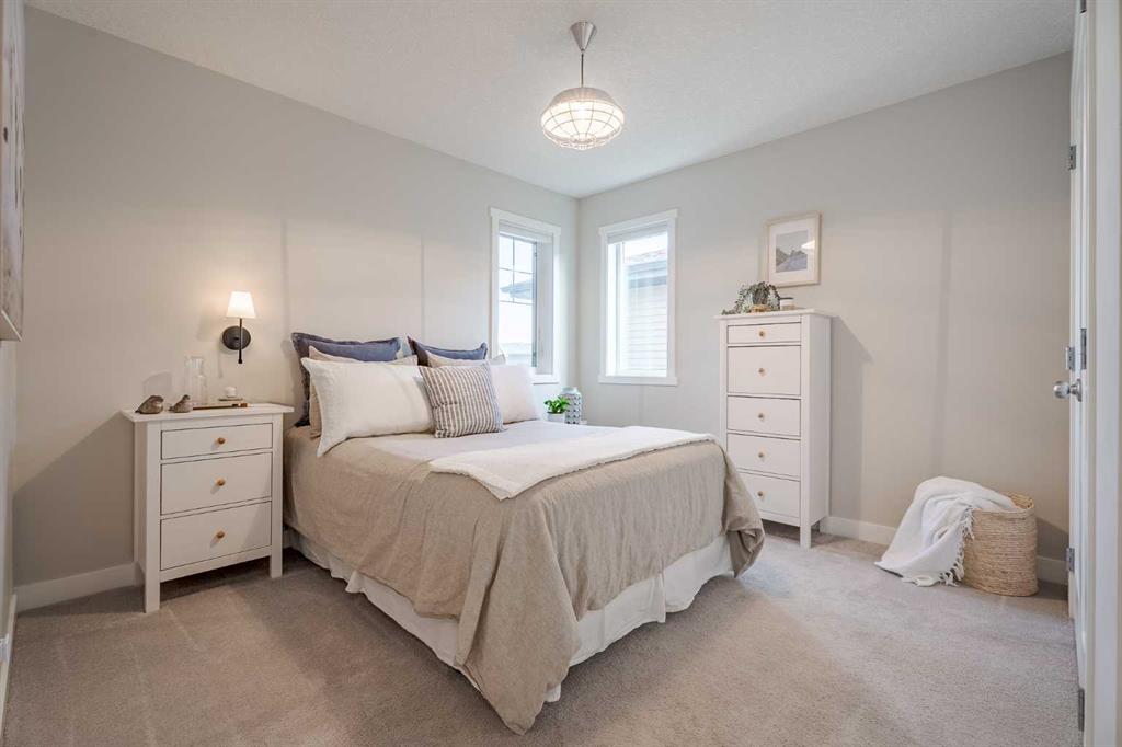 Welcome home to this stunning property in one of Airdrie’s most loved south communities, Kings Heights; with easy and quick access to Deerfoot. Perfectly tucked away on a quiet crescent, this home backs onto beautiful acreage properties, offering a rare sense of space and peaceful, country-style living just minutes from Kingsview Market, its amenities, and a nice selection of nearby schools. Inside, soaring two-storey windows flood the main living area with natural light — a breathtaking view you can also enjoy from the second level. The main floor features ultra-durable laminate floors, a spacious living room centered around a stunning feature fireplace, and a chef’s kitchen with upgraded appliances, and sleek quartz counter throughout. A main floor office/den conveniently placed by the front entrance provides an ideal space for work or study. Upstairs, you’ll find three spacious bedrooms, including a primary suite with a large walk-in closet with built-ins and a spa-inspired 5pc ensuite. You’ll love the open view of the main living area below, where sunlight pours through the dramatic windows. A spacious vaulted ceiling bonus room, along with wainscoting and feature walls throughout, add timeless charm and a perfect amount of living space. The undeveloped basement with a rough-in bathroom awaits your finishing ideas, while the double attached garage provides everyday convenience. Step outside to a large backyard with plenty of room to play, relax, and grow. This home perfectly blends light, luxury, and livability, offering the warmth of country charm with the convenience of city life.