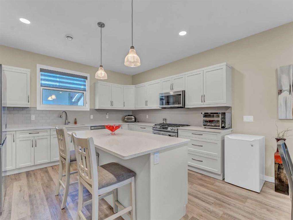 Welcome to this amazing and unique opportunity to own a home in pristine condition with a view in the scenic Ranchlands neighborhood. With a total finished Sq footage of 2,440 Sq ft The home features a non conforming mother in law suite/ Secondary Kitchen in the basement and a maintenance free yard. From the open main floor you will enjoy the coulee and river views from the living room, dining area and kitchen. These areas feature high quality finishes that flow throughout the home. You will appreciate the space provided by and the quality of the kitchen cabinets and quartz countertops. The front covered deck and master Bedroom offer the opportunity to enjoy the beautiful scenery right outside your front door. The Master Bedroom is spacious and features a walk-in closet, secondary closet, and double vanity ensuite. You will also love spending time in the master ensuite bathroom enjoying your self-contained steam shower with mood lighting and a stereo. The second floor has 2 additional bedrooms, a 3-piece guest bathroom, and a conveniently placed laundry room. The laundry room has a vroom central vac attachment, a quartz folding counter above the washer and Dryer and Cabinets to neatly house your supplies. The basement is fully fitted with a secondary- non conforming suite with inside access. Residents or guests in the basement suite, that maintains the quality of finish seen throughout the rest of the home, will enjoy the privacy and comfort the space creates. The layout features a bedroom with a walk-in closet and ensuite 3-piece bathroom. The full kitchen and living room allow ample space for living. An additional washer and dryer located in the basement suite also provide further convenience and privacy. If you would like to have a comfortable space for family and friends to visit, have a full time live in family member who needs their own space, would like to co-purchase a home with a friend or family member, you would enjoy a hobby kitchen or would like to rent a space to help with your finances; This amazing maintenance free property with a view is a must see!!