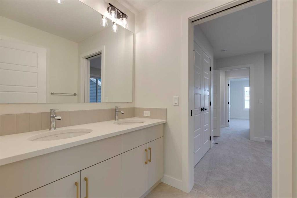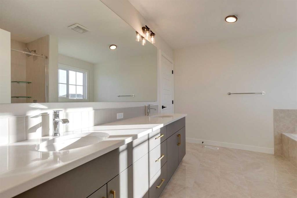 The Pierce 2 offers a refined blend of function, style, and sustainability. This thoughtfully crafted home features professionally curated, on-trend interior selections that bring a modern and cohesive aesthetic throughout. The home embraces an open-concept design that enhances the sense of space and flow, with expansive living areas that are ideal for both everyday living and entertaining. Whether you're hosting guests or enjoying a quiet night in, the seamless layout offers flexibility and comfort throughout. At the heart of the home is a chef-inspired kitchen designed to stir your culinary creativity. Showcasing elegant waterfall quartz countertops, bronze taps, and sleek finishes, the space is both functional and visually striking. A spice kitchen provides added convenience and flexibility for everyday cooking or entertaining, while thoughtful details like upgraded drawer handles complete the elevated design. Upstairs, you'll find four well-appointed bedrooms, including an expansive and truly show-stopping primary bedroom. This serene retreat features a luxurious ensuite with a long soaker tub, a large walk-in shower lined with elongated hexagon tile, and refined finishes—offering the perfect blend of comfort and sophistication. Certified Built Green, the home includes energy-efficient upgrades such as triple-pane windows, a high-efficiency furnace, a solar chase for future solar panel installation, and blower door testing that may qualify for up to 25% mortgage insurance savings. A rough-in for an electric vehicle charger is also included, supporting future-ready living. Smart home features include a programmable thermostat, Ring video doorbell, smart front door lock, motion-activated and smart switches, all easily managed through an integrated Amazon Alexa touchscreen hub. Photos are representative.