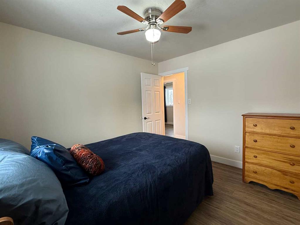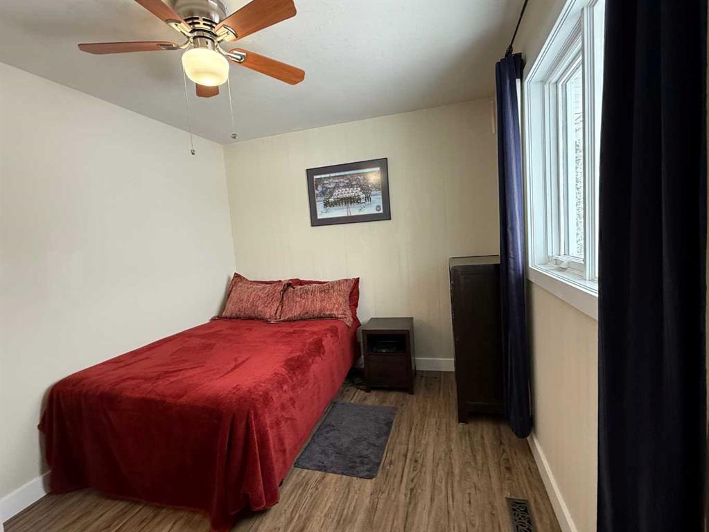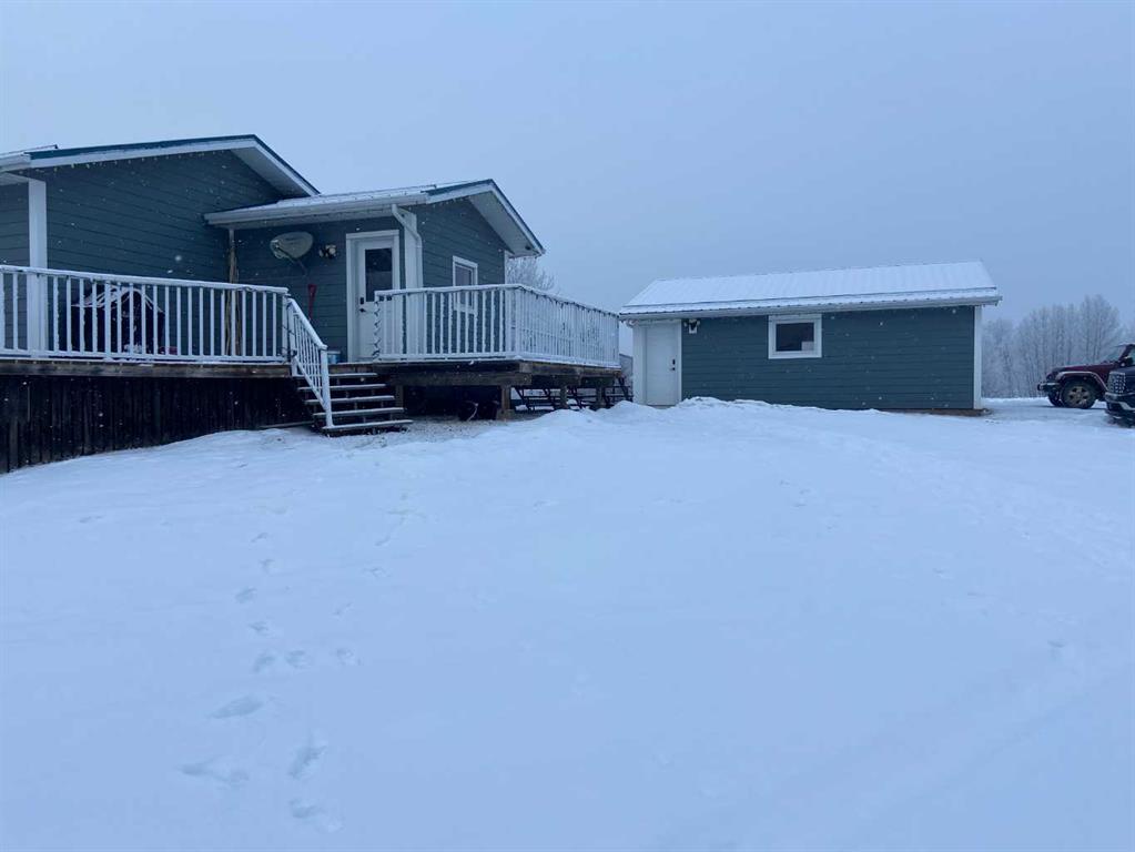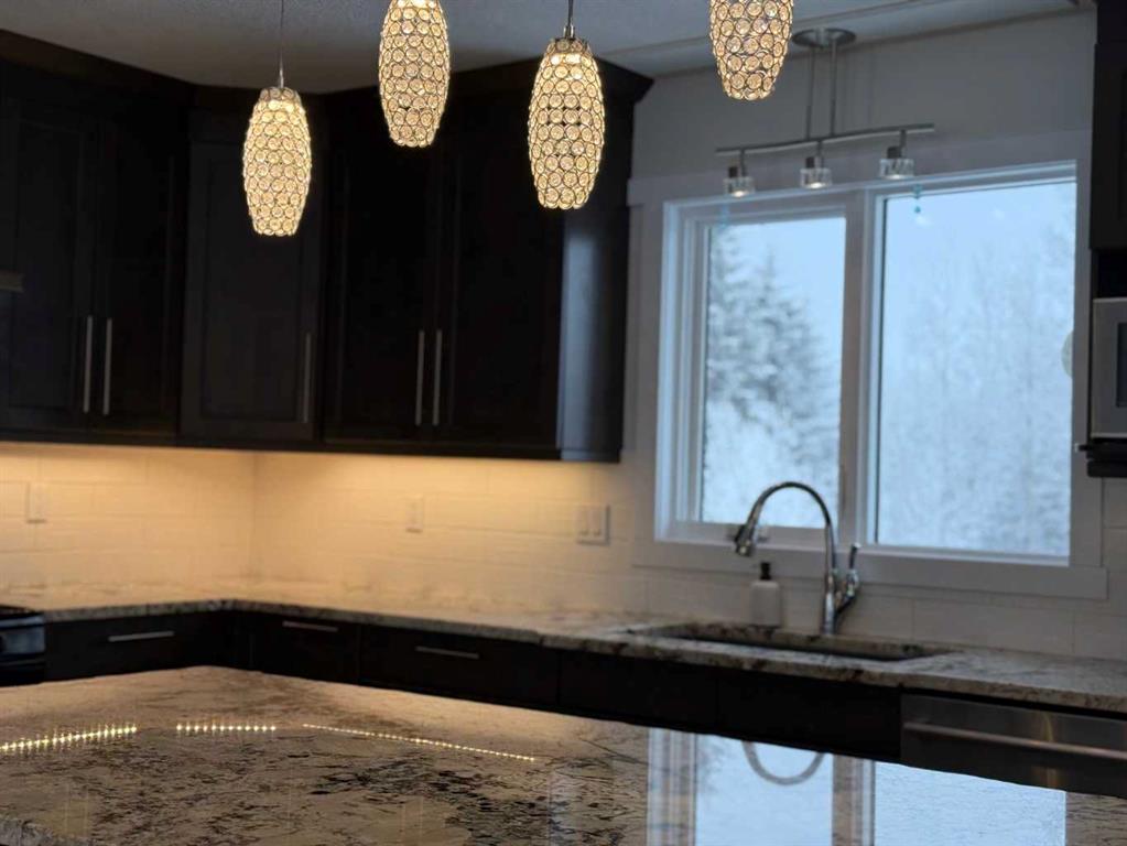 Beautifully maintained home on 4.7 acres with a fully finished walk-out basement. Renovated main level features an open layout, updated kitchen with custom soft-close cabinets, granite counters, modern lighting, and luxury vinyl plank flooring. Three bedrooms and a full bathroom on the main floor. The walk-out basement adds a family room, fourth bedroom, second bathroom, and extensive custom storage as well as a cold storage room. This home is move-in ready. Low-maintenance exterior with metal roof, cement board siding, and hardwired LED color-changing lights. Furnace and on-demand hot water replaced in 2019. Detached 26' x 24' garage with power and concrete floor. Fenced backyard with raised garden beds, plus a cleared area overlooking a creek—ideal for a future fire pit. Quad directly from the property into crown land. Two wells on site; main bath wired for bidet/heated seat. Move-in ready acreage with modern updates and excellent outdoor access.