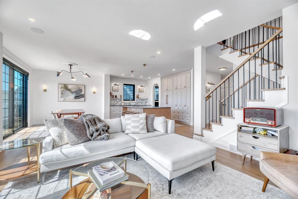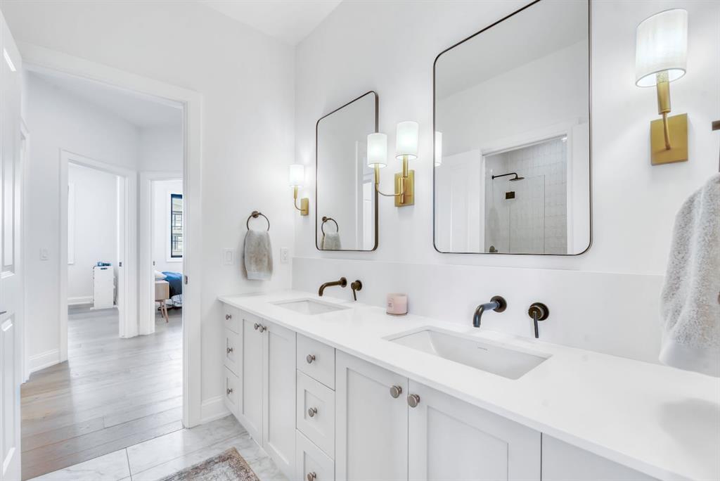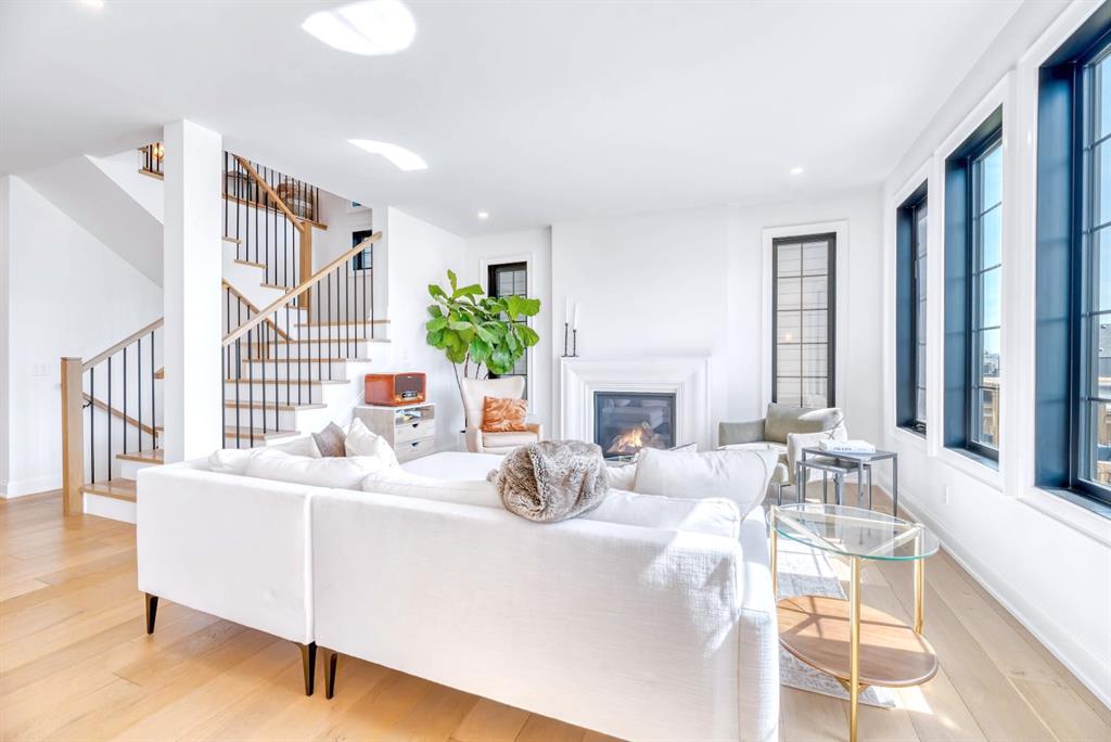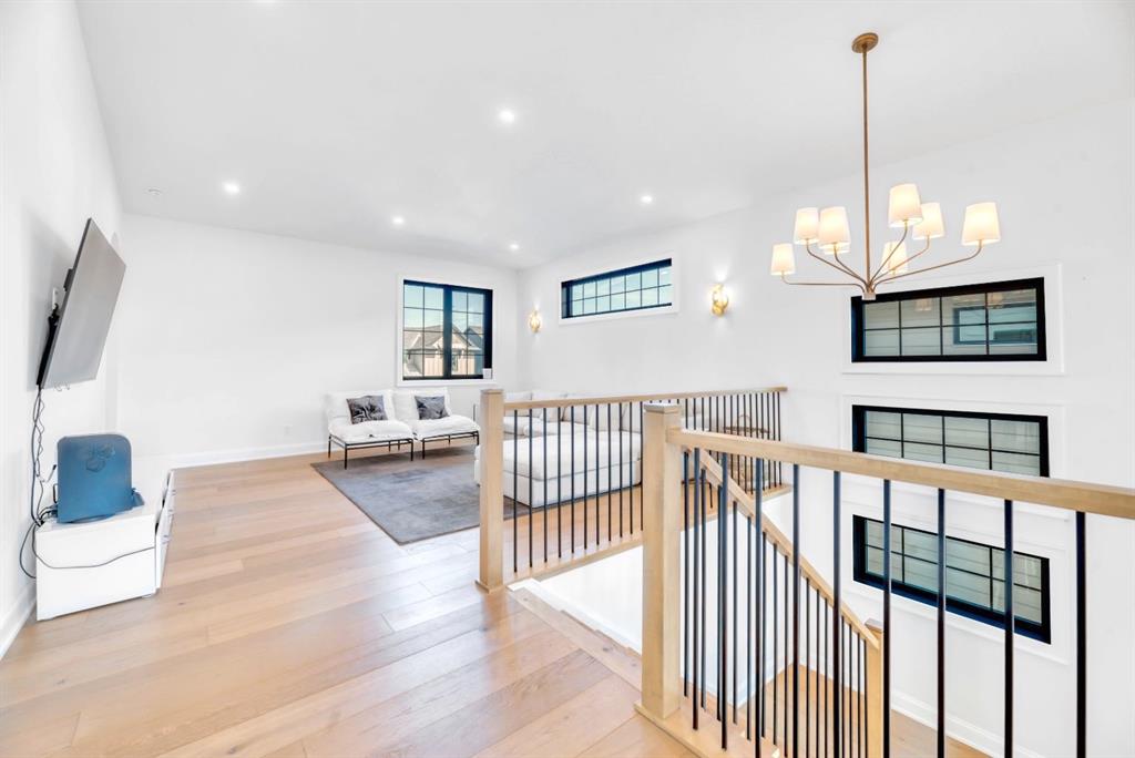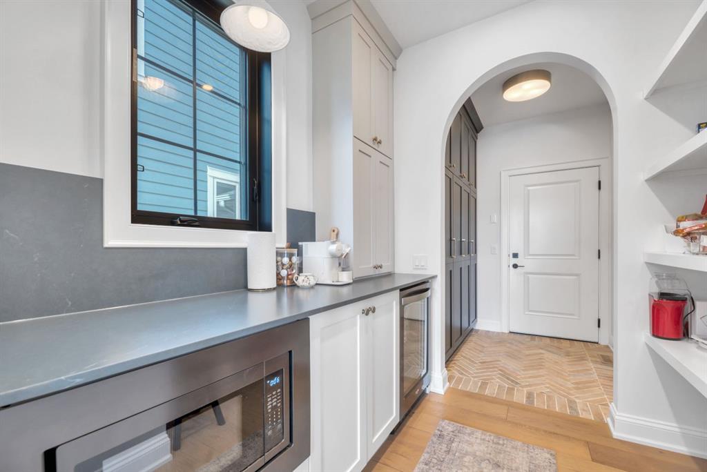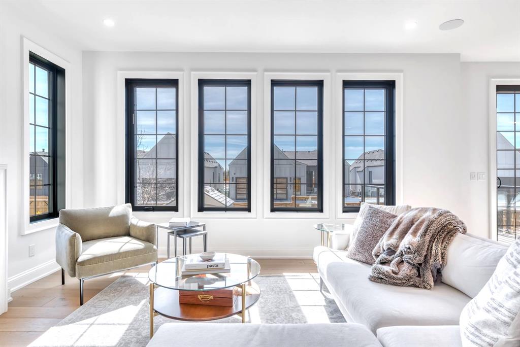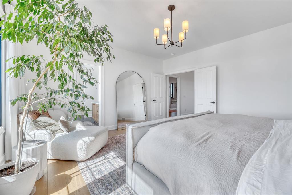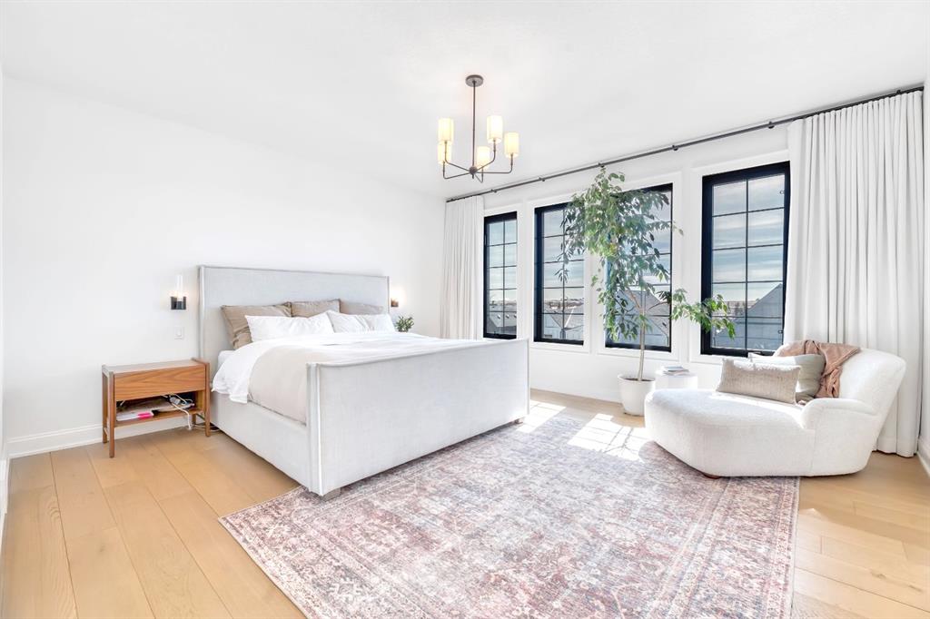 Welcome to an architecturally inspired Organic Modern residence in the award-winning lake community of Harmony—where elevated design meets an unmatched lifestyle just minutes west of Calgary. Enjoy quick access to the city, the renowned Mickelson National Golf Club, and a growing collection of amenities including the lake, beach, pathways, parks, and future village centre—offering a rare blend of recreation, convenience, and community. This modern transitional home offers over 2,700 sq ft of thoughtfully curated living space, combining clean architectural lines with warm, organic finishes. From the moment you arrive, the herringbone brick walkway, soft neutral palette, and striking black-framed windows set the tone for what’s inside. Step into a light-filled interior defined by wide plank natural white oak flooring, soaring ceilings, and custom archways that soften the modern aesthetic and create a sense of flow throughout. The main floor features a stylish front office/den, perfect for working from home, while the open-concept living space is both refined and inviting. At the heart of the home is a stunning designer kitchen that perfectly captures today’s most sought-after style—featuring marble backsplash, marble and honed quartz surfaces, panel-ready appliances, and an induction cooktop with a concealed hood fan. A thoughtfully designed coffee bar and walk-through pantry connect seamlessly to the mudroom, where custom cabinetry and chevron brick flooring elevate everyday function with designer flair. Upstairs, the home continues to impress with 4 spacious bedrooms plus a lofted bonus room with a half-vault ceiling, creating a bright and airy retreat. The primary suite is a true sanctuary, complete with custom drapery and a spa-inspired ensuite featuring floating vanities, wall-mounted faucets, a freestanding soaker tub with bath filler, and a large glass-encased marble shower. The main bathroom is ideal for family living, offering a smart layout with a separate vanity area from the water closet. Every detail has been carefully selected—from champagne bronze hardware and custom lighting to elevated millwork, trim, and finishes throughout—creating a cohesive, high-end aesthetic that feels both modern and timeless. Outdoor living is equally impressive with a composite deck (with storage below), stone patio, and hot tub, plus gas lines to the deck, patio, and garage—perfect for entertaining year-round. Additional features include hot and cold exterior taps, Gemstone permanent soffit lighting, a reverse osmosis system, and a sunshine basement filled with natural light and ready for future development. Sod will be completed as weather permits. Complete with a double attached garage and located in one of the most desirable communities in the Calgary area, this home offers a rare opportunity to own a design-forward, move-in ready property in Harmony. Modern. Warm. Effortlessly elevated.