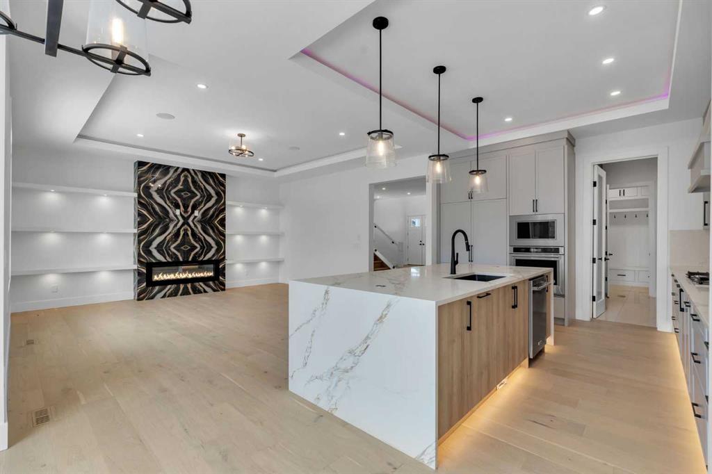 [OPEN HOUSE - THIS SATURDAY JANUARY 31 - 2PM TO 4PM] AMAZING OPTION FOR YOU - BUILDER WILLING TO BUILD A LEGAL SUITE W 2 BEDS & 1 FULL BATH (COST TO BE DETERMINED BASED ON REQUIREMENTS & LEGAL SUITE DEVELOPMENT IS SUBJECT TO CITY APPROVAL) - OVER 3200 SQFT, BRAND NEW HOME, TRIPLE ATTACHED GARAGE, 5 BEDROOMS, 4 BATHROOMS, SIDE ENTRANCE TO BASEMENT - ELEGANT DESIGN AND MODERN FINISHING - This home in Kinniburgh is perfect for a large family and offers the convenience of being close to shops, schools, the lake and all that Chestermere has to offer. Walking in to your home you are greeted with a large foyer and storage space. A hallway connects a den (that can be used as a bedroom), and bathroom to the rest of the main living space. The TRIPLE ATTACHED GARAGE, opens into a mud room and SPICE KITCHEN which allows you to keep your home in pristine condition. The kitchen is a chef's dream with built in STAINLESS STEEL appliances, a large island and beautiful wood finished cabinets. A large living room is warmed with a TILE FACED FIREPLACE, and this space opens onto your DECK. The second floor boasts 4 bedrooms and 3 bathrooms. Including 1 primary ensuite with and expansive 5PC bathroom and a large walk in closet. This bathroom has a full size soak tub and dual vanities. Another bedroom is complete with an ensuite bathroom and walk in closet. 2 other bedrooms and 1 bathroom, laundry and a large family room complete this floor. Welcome to your home! Please note that front landscaping and finishing will be done including a tree. Option for the builder to develop the basement already includes SIDE ENTRANCE. Interior pictures are from another home built by the builder.