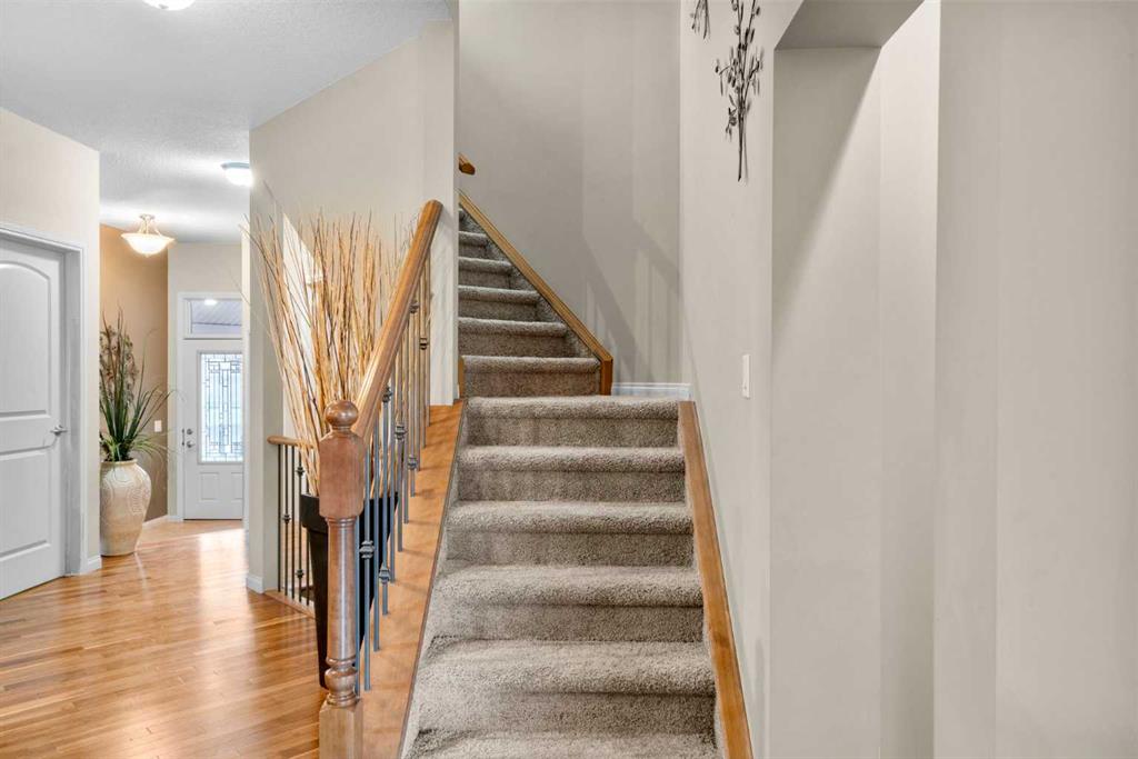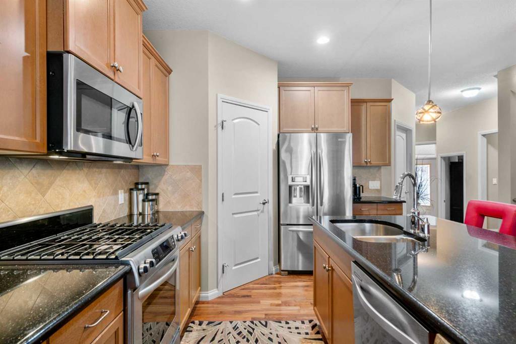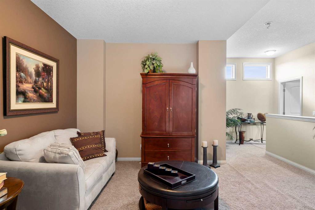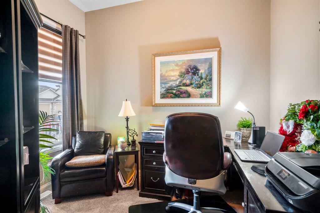 Welcome to 223 Sunset Square in the picturesque community of Sunset Ridge, a home that blends comfort, style, and convenience. Ideal for those seeking retirement living or the ease of main-floor living, this thoughtfully designed property offers an open-concept layout that feels both spacious and inviting. When you walk into the home you are greeted by a lovely office that features a large window for long days of working from home. The kitchen is a standout feature, complete with granite countertops, stainless steel appliances, and a beautifully finished island with stone facing that comfortably seats three or more. It flows seamlessly into the living area, where a gas fireplace with a stunning natural stone surround creates a warm and elegant focal point for relaxation or entertaining. The main-floor primary bedroom is generously sized and features a walk-in closet and a luxurious 5-piece ensuite with a large soaker tub, glass shower, and double vanity with granite countertops. You’ll also appreciate the main-floor laundry room with added storage, conveniently located just off the oversized heated double attached garage. Upstairs, a versatile loft overlooking the main level provides a lovely formal sitting area, along with a second bedroom and a 3- piece ensuite bathroom making it perfect for guests or visiting family who want their own private space. The basement is ready for the next owners creative mind and comes with bathroom rough ins as well as ROUGHED IN IN-FLOOR HEATING! Sunset Ridge is known for its beautiful mountain views, scenic walking trails around the central pond, nearby schools, and numerous parks. The neighbourhood offers a peaceful lifestyle while still being family-friendly and connected to amenities. Whether you’re downsizing, retiring, or simply looking for the convenience of main-floor living with extra space for guests, this home checks all the boxes. Book your showing today!