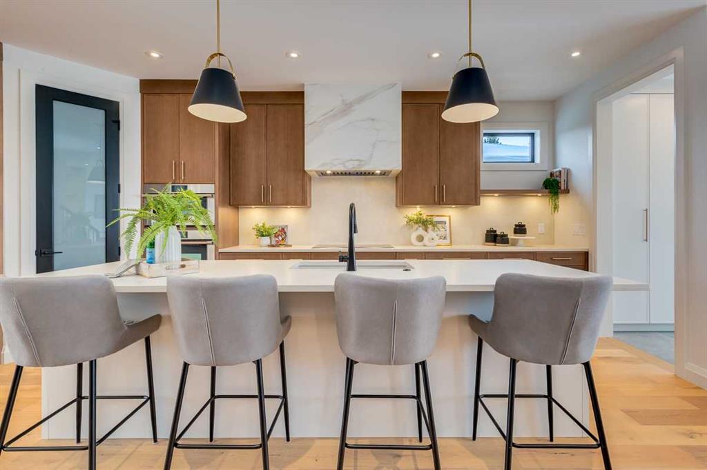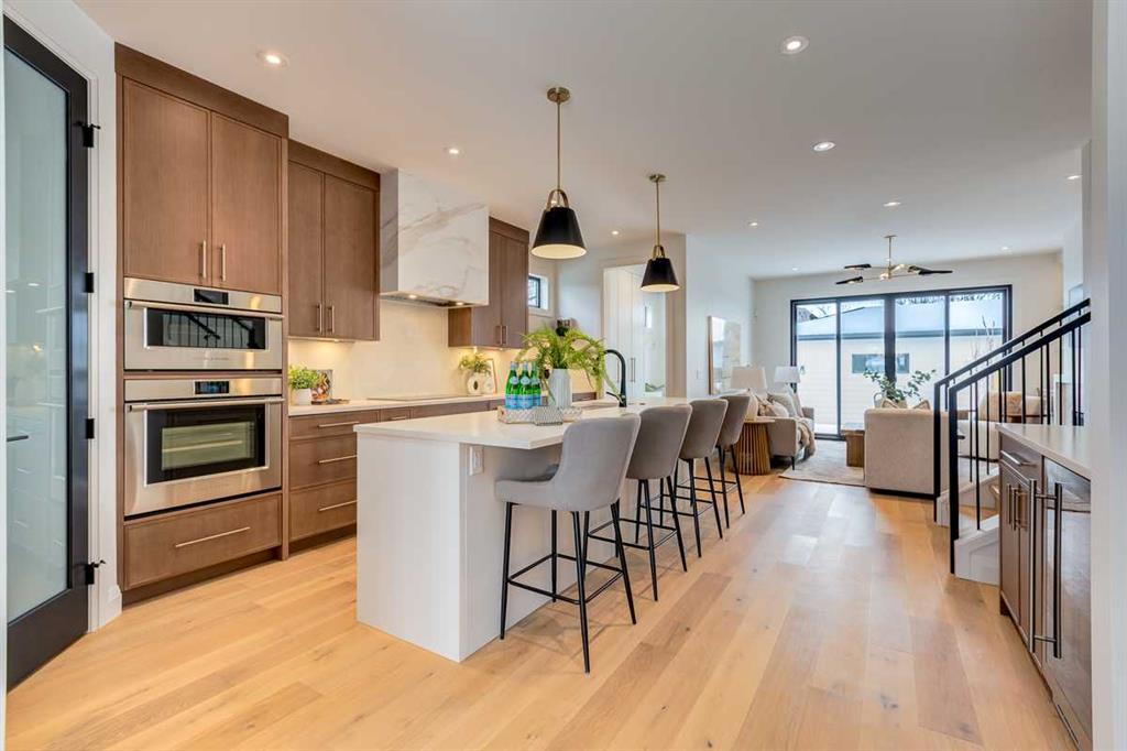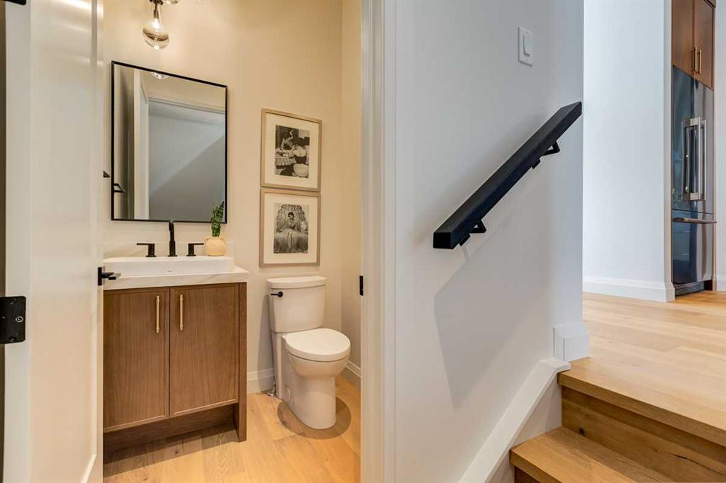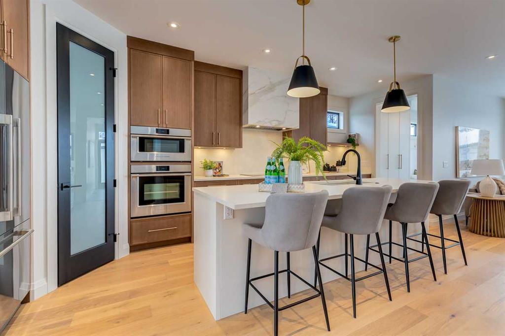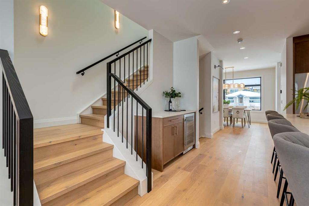 Welcome to this brand-new, exquisitely designed custom home with a West backyard built by Treehouse Developments — an award-winning builder celebrated for quality craftsmanship and thoughtful design. Located in the heart of Killarney, this property stands apart from the typical infill with its elevated finishes, concrete party wall, full New Home Warranty and a level of luxury rarely found, offering both peace of mind and timeless appeal. It’s packed with upgrades throughout and offers a truly refined living experience. Step inside to a welcoming foyer and dining room that flow seamlessly into an open-concept kitchen and living area, ideal for both everyday living and entertaining. The kitchen is equipped with high-end Fisher & Paykel appliances, stone countertops throughout, a large island, walk-in pantry, and stunning white oak rift-cut cabinetry. Extensive custom built-ins are thoughtfully integrated into the foyer, mudroom, and living room, adding function and elegance throughout the main floor. The living room features a porcelain-clad fireplace complete with Frame TV and sliding patio doors leading to a spacious maintenance-free composite deck. A functional mudroom off the rear entry leads directly to the garage, making daily routines effortless. Upstairs, a dramatic skylight floods the stairwell and bonus area with natural light, creating the perfect space for a desk or reading nook. The primary bedroom is impressively spacious, creating a true retreat with a spa ensuite that includes a standalone tub, steam shower with handheld, and heated floors. The main bath offers double sinks and linen storage, while upstairs laundry provides added convenience. Custom built-in closets are found throughout. The fully developed basement includes a large rec room with dry bar and bar fridge, a bedroom suite with walk-in closet and ensuite, and hydronic in-floor heating paired with an on-demand boiler for year-round comfort. A central AC/heat pump system adds modern efficiency. Outside, enjoy the fully landscaped private sunny yard and an oversized 21' x 21' garage, insulated and drywalled to fit a truck. The exterior blends stone, cedar accents, and Hardie siding for striking curb appeal. This home is move-in ready and exemplifies the craftsmanship, quality, and design that make Treehouse Developments a standout builder in Calgary. It’s rare for a Treehouse-built home to hit the market, making this a special opportunity to own a truly exceptional property.