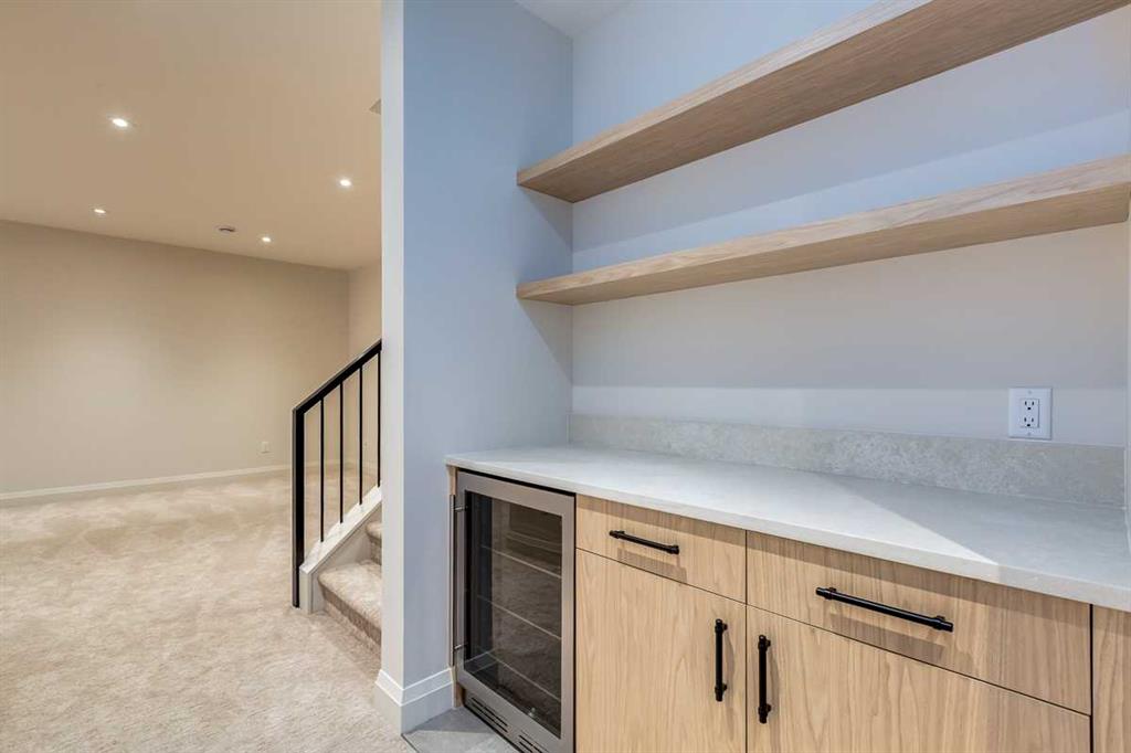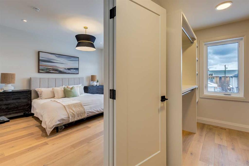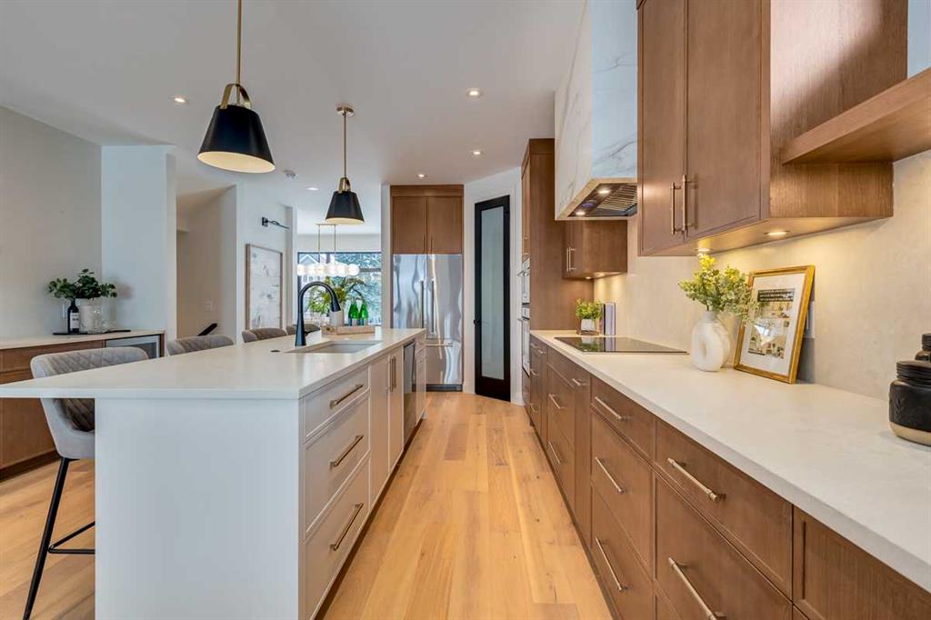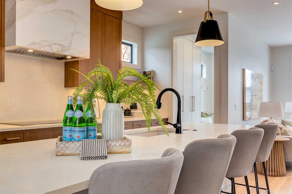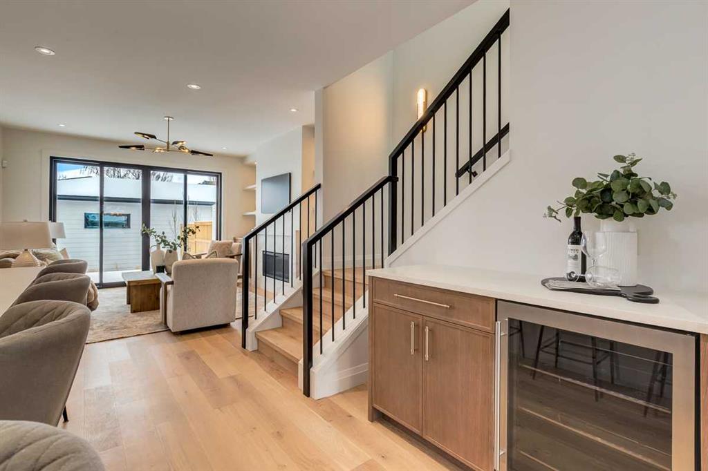 Welcome to this brand-new, exquisitely designed custom home with a West backyard built by Treehouse Developments — an award-winning builder celebrated for quality craftsmanship and thoughtful design. Located in the heart of Killarney, this property stands apart from the typical infill with its elevated finishes, concrete party wall, full New Home Warranty and a level of luxury rarely found, offering both peace of mind and timeless appeal. It’s packed with upgrades throughout and offers a truly refined living experience. Step inside to a welcoming foyer and dining room that flow seamlessly into an open-concept kitchen and living area, ideal for both everyday living and entertaining. The kitchen is equipped with high-end Fisher & Paykel appliances, stone countertops throughout, a large island, walk-in pantry, and stunning white oak rift-cut cabinetry. Extensive custom built-ins are thoughtfully integrated into the foyer, mudroom, and living room, adding function and elegance throughout the main floor. The living room features a porcelain-clad fireplace complete with Frame TV and sliding patio doors leading to a spacious maintenance-free composite deck. A functional mudroom off the rear entry leads directly to the garage, making daily routines effortless. Upstairs, a dramatic skylight floods the stairwell and bonus area with natural light, creating the perfect space for a desk or reading nook. The primary bedroom is impressively spacious, creating a true retreat with a spa ensuite that includes a standalone tub, steam shower with handheld, and heated floors. The main bath offers double sinks and linen storage, while upstairs laundry provides added convenience. Custom built-in closets are found throughout. The fully developed basement includes a large rec room with dry bar and bar fridge, a bedroom suite with walk-in closet and ensuite, and hydronic in-floor heating paired with an on-demand boiler for year-round comfort. A central AC/heat pump system adds modern efficiency. Outside, enjoy the fully landscaped private sunny yard and an oversized 21' x 21' garage, insulated and drywalled to fit a truck. The exterior blends stone, cedar accents, and Hardie siding for striking curb appeal. This home is move-in ready and exemplifies the craftsmanship, quality, and design that make Treehouse Developments a standout builder in Calgary. It’s rare for a Treehouse-built home to hit the market, making this a special opportunity to own a truly exceptional property.