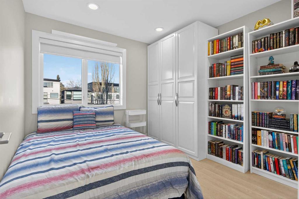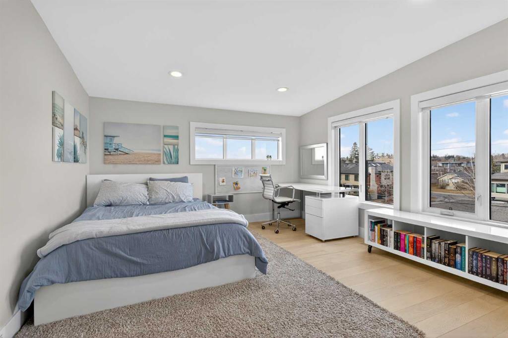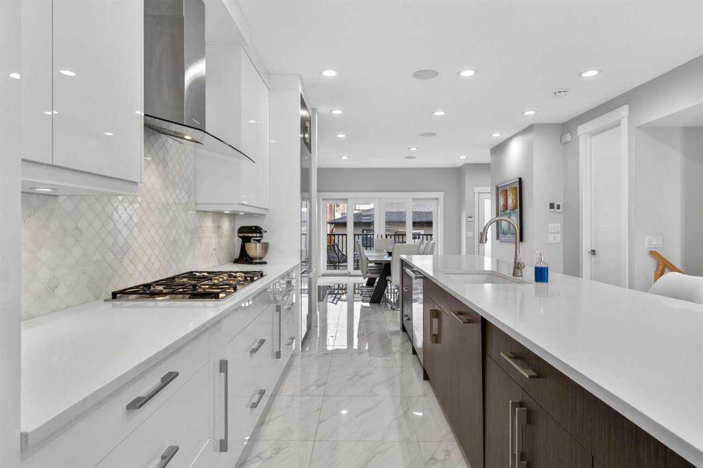 Here in the coveted inner city neighbourhood of West Hillhurst is where you’ll find your new home…this incredible 3-storey semi-detached loaded with the finest of luxury living, in this prime location only minutes to Kensington, Bow River pathway system & downtown. With over 3300sqft of living space spread over 4 levels, this stunning home enjoys a total of 5 bedrooms & 5 bathrooms, quartz countertops & central air, wide-plank engineered hardwood floors & panoramic city views as far as the eye can see! Showcased by expansive 9ft ceilings, you’ll just love the design of the main floor with its wonderful open flow & heated ceramic tile floors, from the airy living room with South-facing living room to the spacious dining room with sleek contemporary fireplace, & the fully-loaded kitchen with massive centre island with under-counter cabinets, top-of-the line Miele stainless steel appliances…including gas cooktop & built-in convection oven, bar area with wine fridge, walk-in pantry & custom cabinets highlighted by 2 huge pull-out spice/pantries. There are 3 bedrooms & 2 full bathrooms on the 2nd level…including the South-facing owners’ retreat with 2 walk-in closets, built-in shoe cabinet, floor-to-ceiling windows & spa-inspired ensuite with heated floors & quartz-topped double vanities, free-standing soaker tub & fantastic walk-in glass steam shower. Another bedroom with walk-in closet & its own private ensuite is on the top floor, plus a dynamite loft with skylight & South-facing balcony from where you can check out the downtown skyline & the surrounding neighbourhood. The lower level is beautifully finished with a 5th bedroom with walk-in closet, full bathroom with glass shower & terrific rec room area. Additional features include the 2nd floor laundry room with stacking Samsung steam washer & dryer, built-in ceiling speakers & flat ceilings, built-in storage cabinets in both the front foyer & rear mudroom, roughed-in radon system, closet organizers, heated tile floors in the main/2nd floor/3rd floor bathrooms, closet organizers & fully fenced backyard with deck (complete with gas bbq line) & insulated/drywalled detached 2 car garage with 220V wiring. Madeleine D’Houet School is steps from your front door & you’re walking distance to popular neighbourhood parks & playgrounds. A truly amazing opportunity you won’t want to miss…to make the home of your dreams come true!