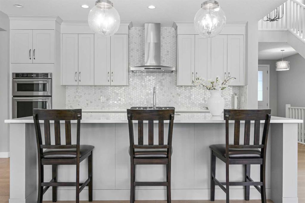 Welcome to 224 Cranbrook Drive SE, a stunning executive 2-storey with 4 bedrooms and 5 bathrooms, backing onto a peaceful reserve in desirable Cranston. This bright open floor plan features a chef’s kitchen with central island, stainless steel appliances, new refrigerator, and new stove, and butler’s pantry, open to a spacious great room with cozy fireplace, a large dining room, and oversized sliding doors leading to a huge patio and outdoor living space. A private office and spacious mudroom with built-in lockers add everyday convenience. Upstairs offers a bonus room with vaulted ceilings and reserve views, plus three bedrooms including a luxurious primary retreat with walk-in closet and spa-inspired 5-pc ensuite with soaker tub and separate shower that flows into a huge laundry room with sewing or office space. Two additional bedrooms each feature walk-in closets and private ensuites. The fully developed basement extends your living space with a large rec room, wet bar, full bath, and an additional bedroom with walk-in closet. Outdoor living shines with a deck and patio, all backing onto tranquil green space. Pride of ownership is evident throughout, with additional highlights including a triple attached garage with built-ins, smart home access, dual furnaces, humidifier, and efficient hot water. Exceptional value and an excellent family home that blends elegance, comfort, and location!