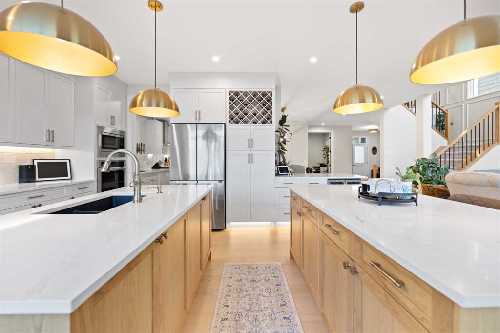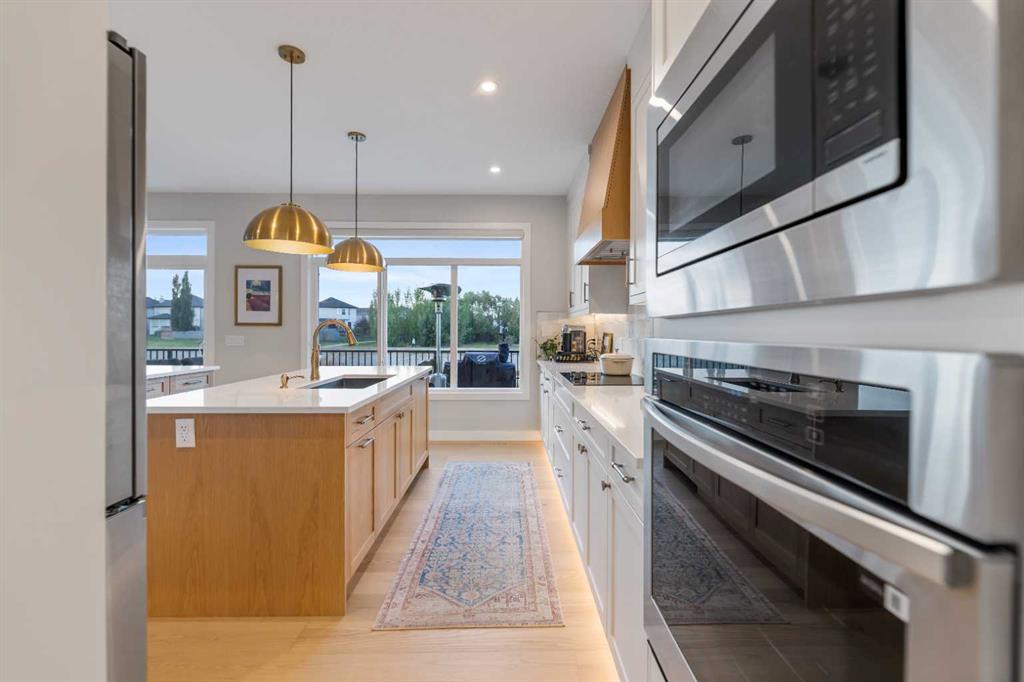 ***Backing onto the Canal****Welcome to this absolutely Stunning 7 Bedroom 5 Bathroom Home with over 4400 square feet of developed living space with a Triple car garage! This home is an absolute must see with lots of upgrades! The Main Floor features a Main Floor Bedroom that can be used as a perfect work from home office as well, a Full Bathroom with a Walk-in Shower, a large mudroom with built-in shelves perfect for kids, a walk-through pantry with ample storage and a Spice Kitchen with Gas Range, Hoodfan and extra Dishwasher and Sink! This Chic Kitchen has Built-in Microwave and Oven and a Double Island. The Family room is Open to above and has a Gas fireplace and opens to the a sprawling deck that spans then entire back of the house and overlooks the Canal. The Upper floor as 4 Bedrooms including 2 Master Bedrooms perfect for large Families. The main Master bedroom overlooks the Canal and has a beautifully large 5-piece Ensuite with a Steam Shower and Walk-in Closet with its own island. The other 2 Bedrooms are both connected to the 3rd full Bathroom upstairs and are next to the Large Bonus room and Laundry room that has built-in shelves and sink. The Fully Developed basement can easily be converted to have a suite downstairs as all rough-ins are there! It also has a Separate Entry, a full Bathroom, Rec Room and 2 more bedrooms with one that is perfect for a gym. This home also has Landscaping already done, Air Conditioning, Garage Heater, Fencing already complete, separate temperature on each floor, under cabinet lighting on main floor bathroom, kitchen, spice kitchen and main ensuite. This house is a must see as there are too many upgrades to list here. Call to book your private showing today!