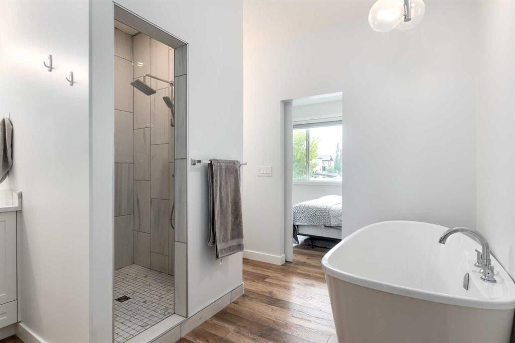 Brand new executive bungalow with attached triple garage —ready for possession by Christmas! This 1,536 sq. ft. fully finished home showcases modern, high-quality finishes throughout. The stunning chef’s kitchen features quartz countertops and backsplash, stylish high-end cabinetry, and a large walk-in butlers pantry. The open-concept main floor includes a cozy living room with a gas fireplace and custom built-in shelving, plus a spacious mudroom off the garage with built-in lockers and convenient main-floor laundry. There are two bedrooms on the main level, including a beautiful primary suite with a spa-inspired ensuite boasting a custom tile shower, soaker tub, and large walk-in closet. The fully developed basement offers in-floor heat, large daylight windows, a generous family room, two additional bedrooms, and a gym or flex space—perfect for family living. Enjoy outdoor living on the large, private, covered east-facing deck that overlooks the backyard with back alley access and space to build an additional garage or shop. Located on a mature, family-friendly street, with quick access to Hwy 2A and Hwy 2, just 10 minutes from Costco and 25 minutes to South Calgary. Please click the multimedia tab for an interactive virtual 3D tour and floor plans.