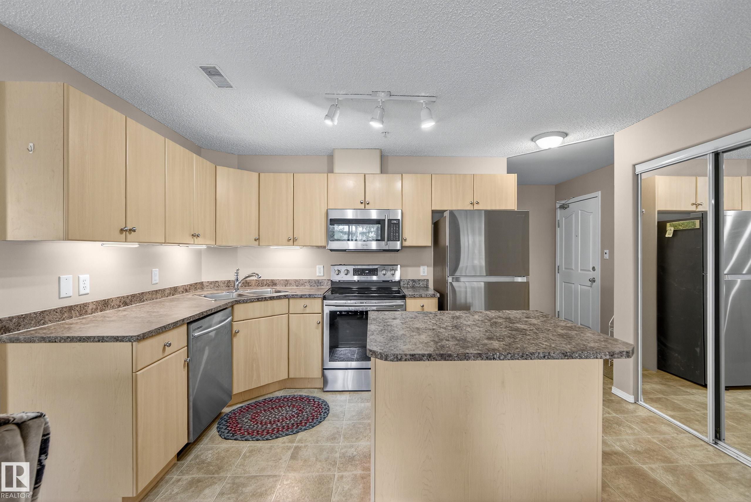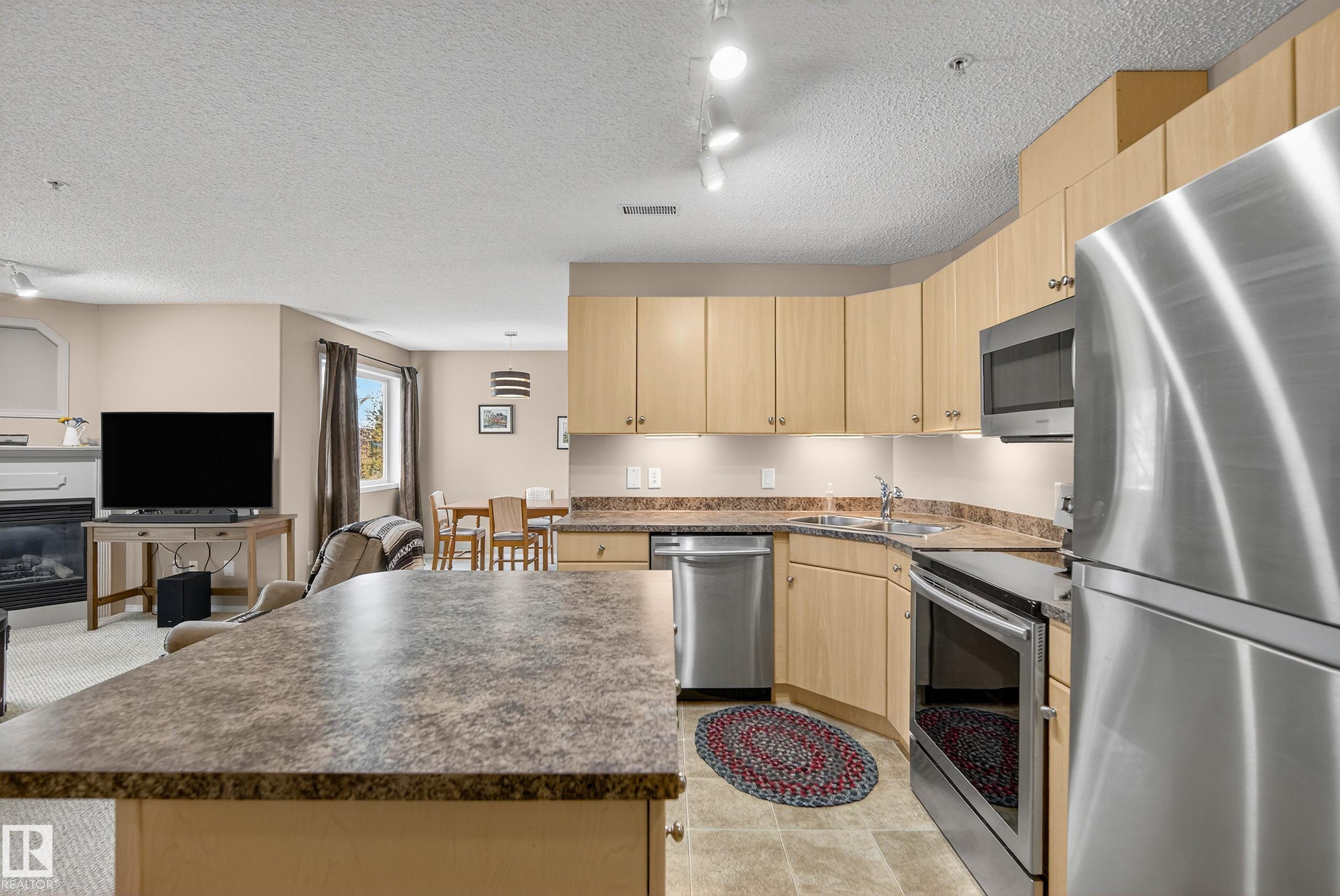 Twice the comfort, twice the convenience: two bedrooms, two bathrooms, two titled parking. This bright corner condo stands out with the rare bonus of TWO titled parking spots, one heated underground + one surface, both steps from the unit. Inside, the open kitchen with island + new stainless appliances flows into dining + living space anchored by a cozy gas fireplace. A west-facing balcony (with BBQ + gas line) adds sunshine + outdoor living. The primary suite features a walk-through closet + 4pc ensuite, while the second bedroom works perfectly for guests, a home office, or a roommate. A full bath, in-suite laundry/storage + underground storage cage complete the home. The well-kept building includes a fitness centre, games room + guest suite. All in a vibrant community near shops, parks, transit + quick access to Henday, Yellowhead + base.