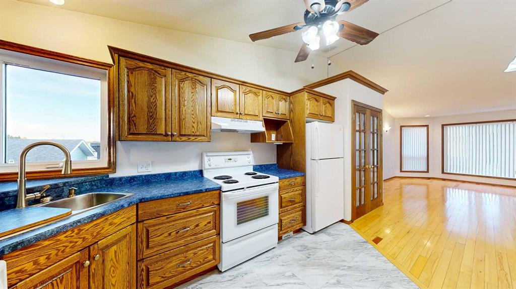 Spacious Bilevel in NE Crescent Heights. This well-maintained 1,335 sq ft bilevel with 2 x 6 Construction, and ICF block basement. This home offers an abundance of space and flexibility for any lifestyle. Featuring 4 large bedrooms, 2 full bathrooms and 1 half bath, this home is ideal for families or those looking for room to grow. The main floor welcomes you with beautiful hardwood floors in the living room and French doors leading to a versatile bonus room — perfect for a home office or formal dining area. The bright kitchen offers access to an unheated sunroom, providing extra space for relaxing or entertaining. Convenient main floor laundry adds to the functionality. Downstairs, you’ll find a large open family room, a kitchenette, and plenty of storage, offering excellent potential for extended family or guests. 2 x 6 Construction, and ICF block basement. Fuse panel is ready for solar panel installation. Outside, the property features a triple car garage, ample parking, and a location close to schools, parks, and shopping. Fast possession available, so you can move right in and make it your own! Title insurance offered in lieu of a Real Property Report.