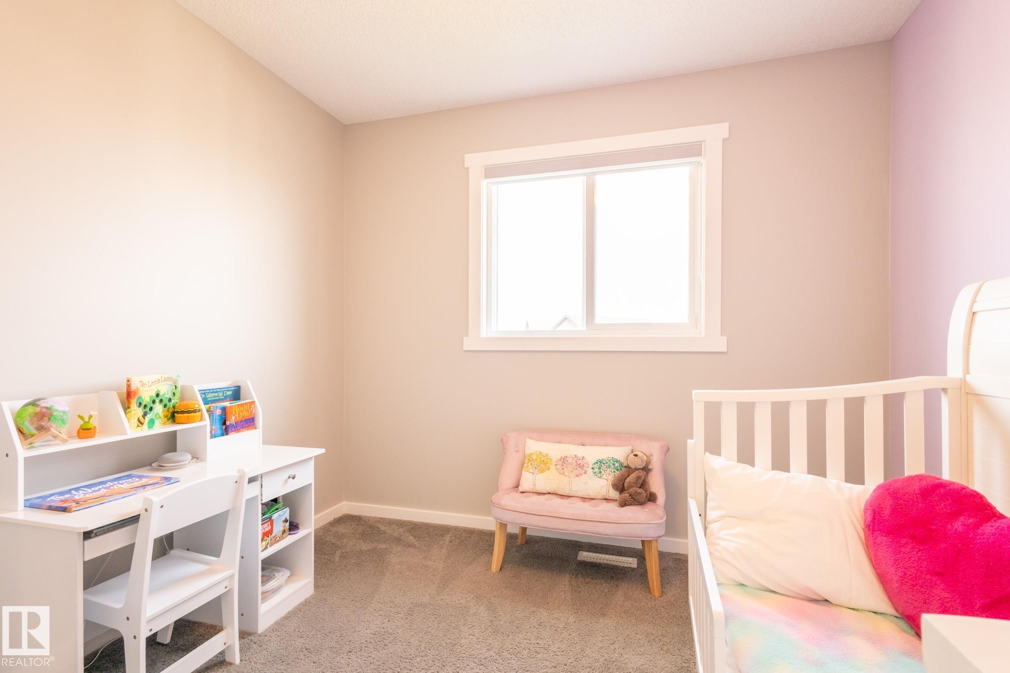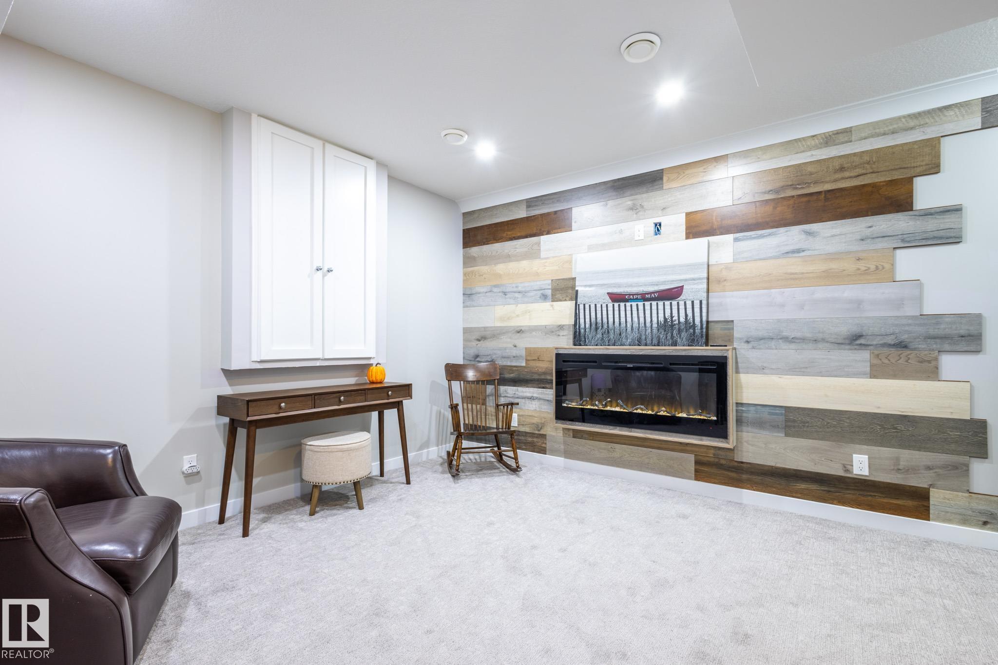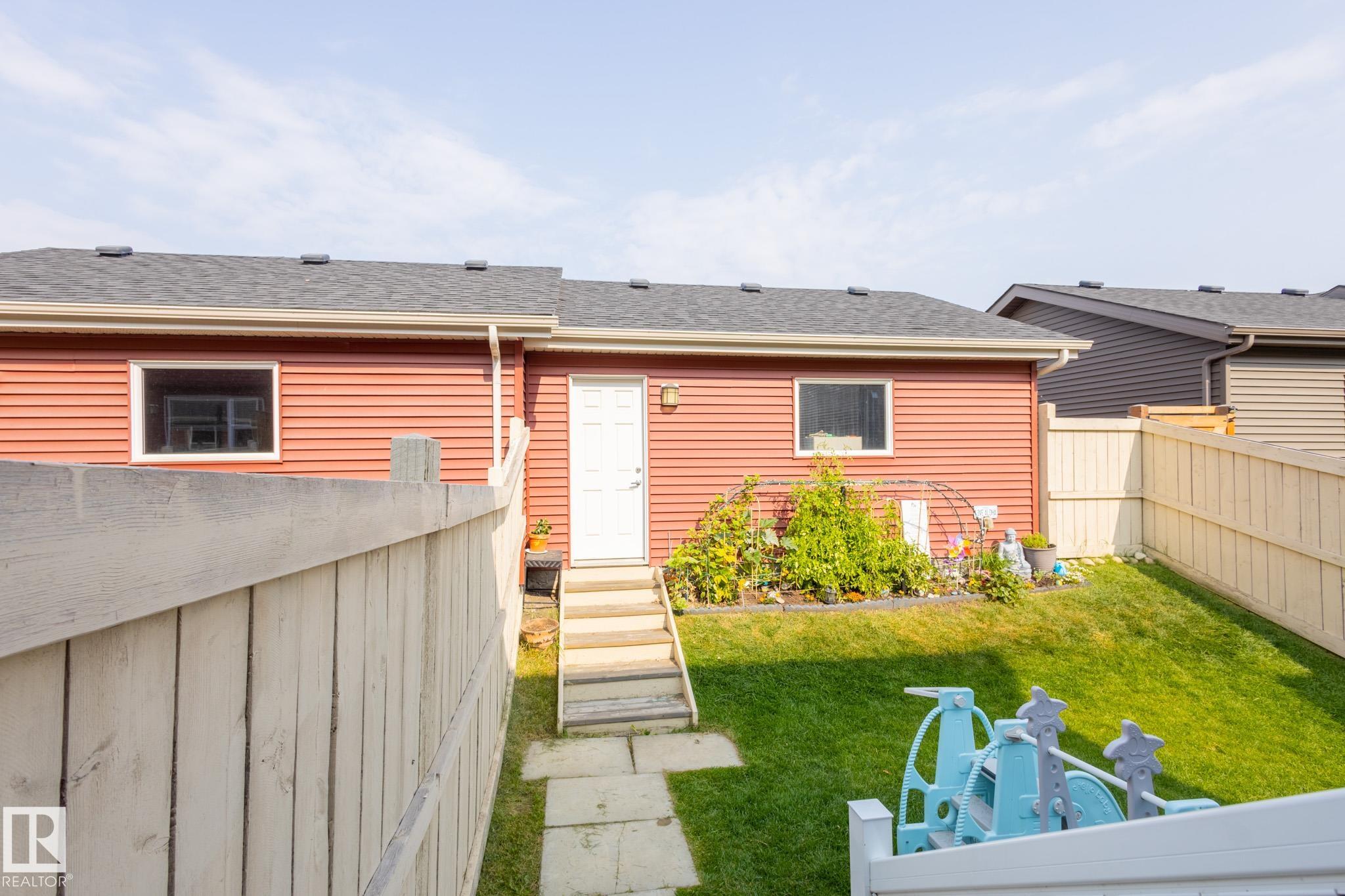What makes this home special? A professionally finished basement with permits! NO condo fees! End unit! Facing the park! With a large kitchen island, quartz countertops, stainless-steel appliances and powder room. Upstairs, a sun-drenched Primary retreat includes a spacious walk-in closet and 3-pc ensuite. Down the hall, two neighbouring bedrooms share a 4-pc bath. The professionally finished basement expands possibilities with a cozy fireplace rec room, office / guest quarters, 3-pc bath, closeted laundry room, & plenty of extra storage. Enjoy the outdoors with a front veranda and fenced backyard. The deck is fitted with a gas line and the established garden supplies strawberries, chives and chocolate mint annually. The double garage supports swift access to major routes, excellent schools, shopping and entertainment options alike. Professionals, families; this vibrant growing community has something for everyone!